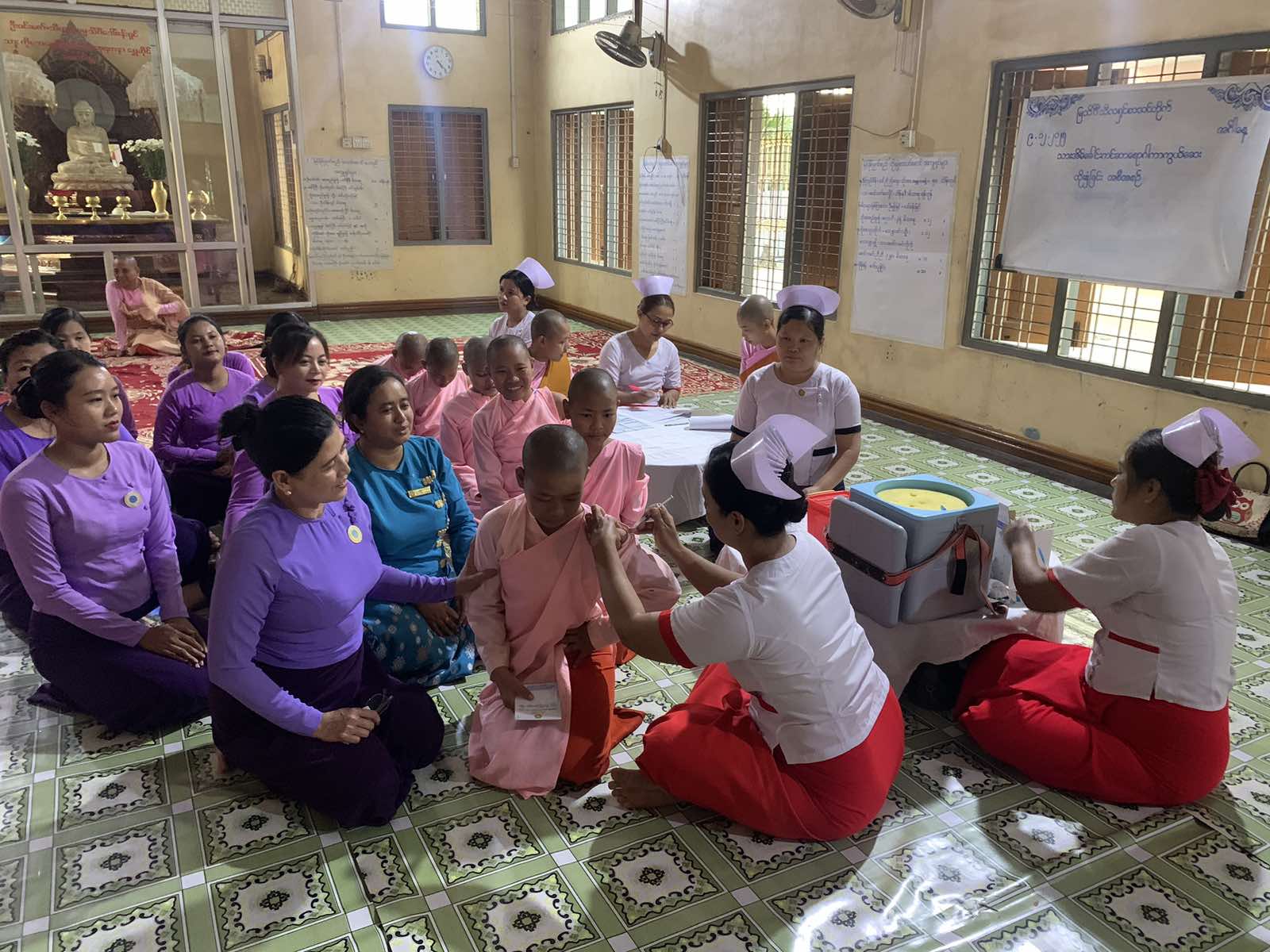 ဧရာဝတီတိုင်းဒေသကြီး၊ ဟင်္သာတခရိုင်၊ ဟင်္သာတမြို့နယ်၌ ခရိုင်နှင့်မြို့နယ် ပြည်သူ့ကျန်းမာရေးဦးစီးဌာနမှ ကာကွယ်ဆေးဖြင့် ကာကွယ်၍ရသော ရောဂါများမဖြစ်ပွားစေရေးအတွက် အရှိန်အဟုန်မြှင့်ဆောင်ရွက်လျက်ရှိရာ ယမန်နေ့က သုံးပင်ကွင်းရပ်ကွက်ရှိ ဆယ်ထပ်ကြီးဘုရားဝန်းစုရပ်နှင့် မြဝတီရပ်ကွက်ရှိ မြသိင်္ဂီ သီလရှင် စာသင်တိုက်စုရပ်တို့တွင် သားအိမ်ခေါင်းကင်ဆာရောဂါကာကွယ်ဆေးများကို ထိုးနှံပေးခဲ့ကြသည်။