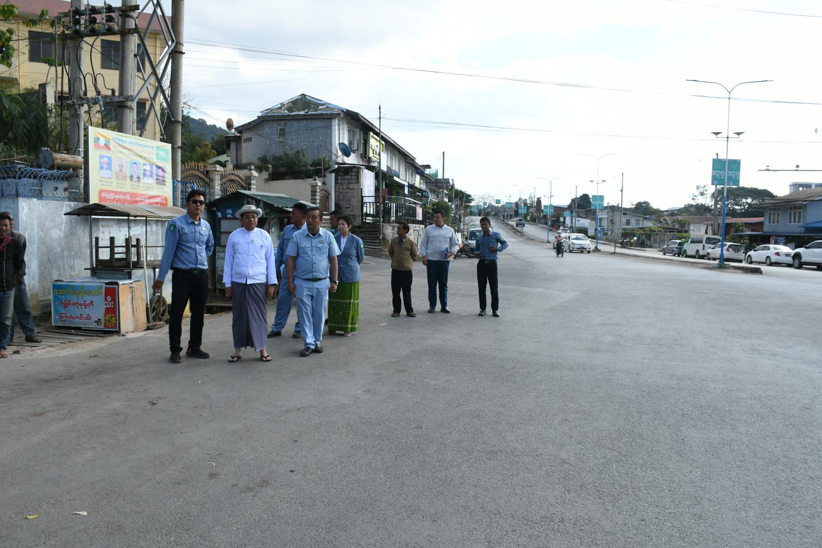 ထိုသို့ ကွင်းဆင်းစစ်ဆေးရာတွင် တောင်ကြီးမြို့၊ ကန်ရှေ့ရပ်ကွက်ရှိ ဇင်ယော်လမ်း ကွန်ကရစ်ခင်းခြင်းနှင့် ရေအေးကွင်းရပ်ကွက်ရှိ ကမ္ဘောဇလမ်းကတ္တရာခင်းခြင်းလုပ်ငန်းများ ဆောင်ရွက်ပြီးစီးနေမှုအခြေအနေများကိုလည်းကောင်း၊ အေးသာယာမြို့၊ ရပ်ကွက်(၃) (ထုံးဖို)ရှိ နောင်အင်လမ်းဆုံ ကွန်ကရစ်လမ်းပြုပြင်ပြီးစီးမှုအခြေအနေများကိုလည်းကောင်း ကြည့်ရှုစစ်ဆေးရာ တောင်ကြီးမြို့နယ် စည်ပင်သာယာရေးဌာနမှ အမှုဆောင်အရာရှိ ဦးကျော်မင်းထိုက်နှင့် တာဝန်ရှိသူများက လမ်းခင်းခြင်းလုပ်ငန်းနှင့်နှင့် လမ်းပုခုံးပြုလုပ်ခြင်း လုပ်ငန်းများဆောင်ရွက်နေမှုအခြေအနေများအား ရှင်းလင်းတင်ပြခဲ့သည်။