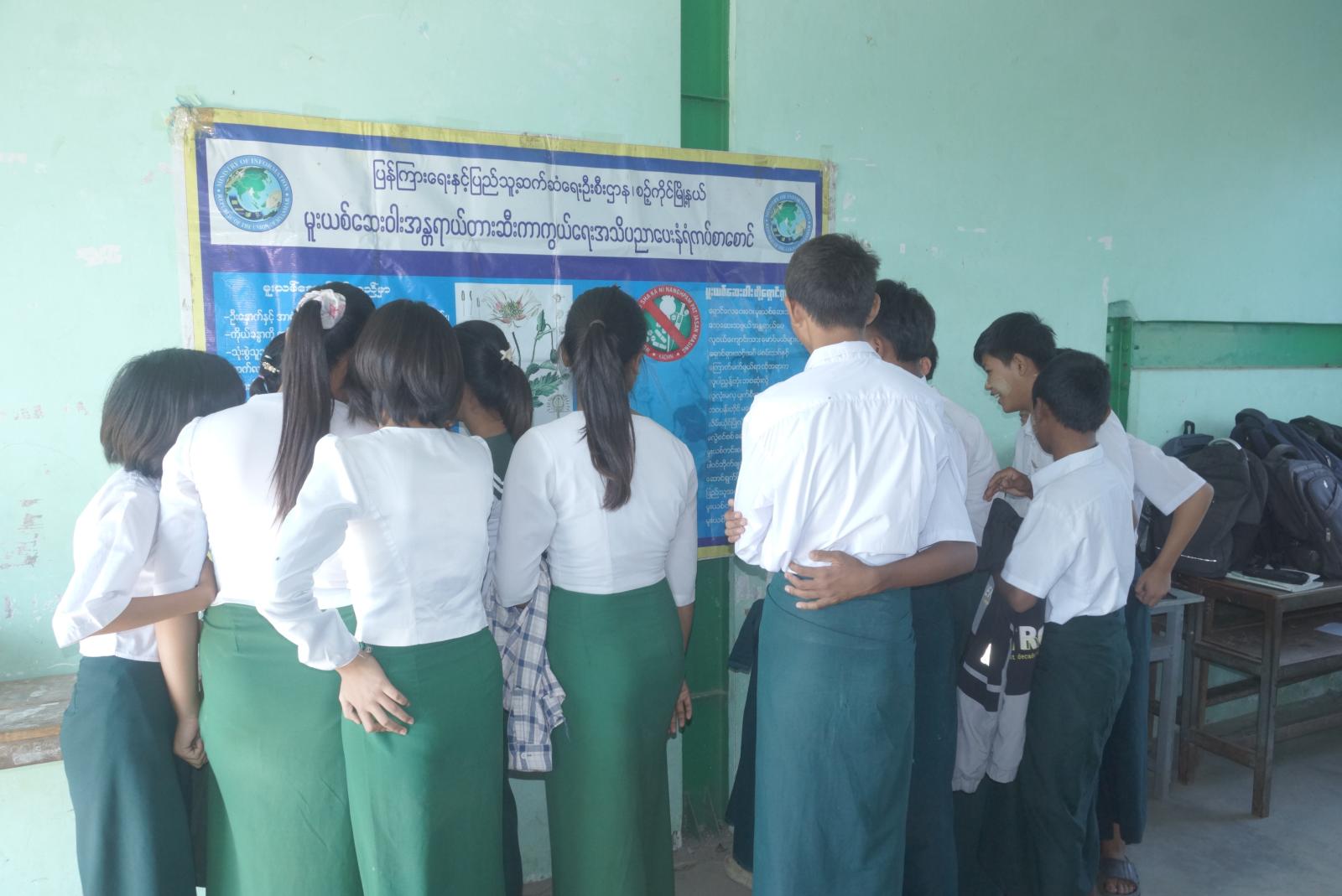 ထို့နောက် ကျောင်သား/ကျောင်းသူများက သိရှိလိုသည်များ မေးမြန်းခဲ့ရာ တာဝန်ရှိသူများက ပြန်လည်ဆွေးဆွေးဖြေကြားခဲ့ကြောင်းနှင့် တက်ရောက်လာကြသော ကျောင်းသား/ ကျောင်းသူများက ခန်းမအတွင်း ပြသထားသော အသိပညာပေး နံရံကပ်စာစောင်များကို စိတ်ပါဝင်စားစွာ လေ့လာကြည့်ရှုခဲ့ကြသည်။