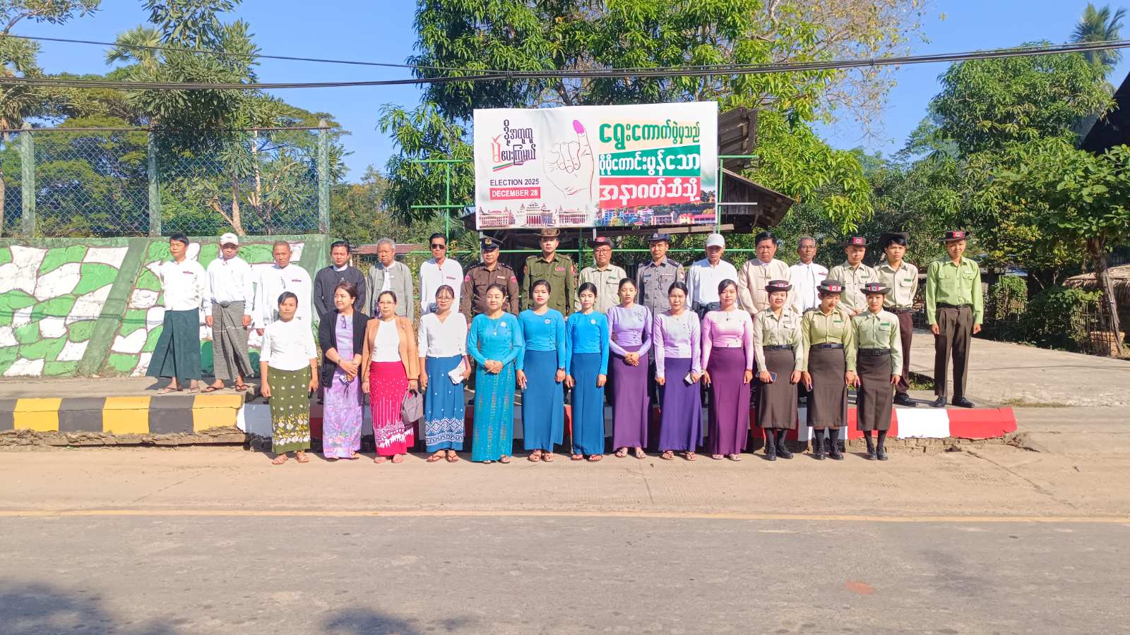 မြေစိုက်ပိုစတာ(Billboard) စိုက်ထူပွဲသို့ မြို့နယ်စီမံခန့်ခွဲရေးနှင့်အုပ်ချုပ်ရေးကော်မတီဥက္ကဋ္ဌ ဦးရဲထွန်းနှင့် အဖွဲ့ဝင်များ၊ မြို့နယ်ရွေးကောက်ပွဲကော်မရှင်အဖွဲ့ခွဲ အဖွဲ့ဝင်များ၊ မြို့နယ်အမျိုးသမီးရေးရာအဖွဲ့ဥက္ကဋ္ဌနှင့် အဖွဲ့ဝင်များ၊ မိခင်နှင့်ကလေးစောင့်ရှောက်ရေးအသင်းအဖွဲ့ဝင်များ တက်ရောက်ခဲ့ကြပြီး၊ ရွေးကောက်ပွဲမှသည် ပိုမိုကောင်းမွန်သော အနာဂတ်ဆီသို့၊ ဒီမိုကရေစီကို ပြန်လည်ဖော်ဆောင်ဖို့အတွက် ရွေးကောက်ပွဲမှလွဲ၍ အခြားနည်းမရှိပါ၊ ပြည်သူများလိုလားသည့် ဒီမိုကရေစီ နိုင်ငံတော်ကိုရွေးကောက်ပွဲဖြင့်သာ ဖော်ဆောင်နိုင်ပါသည်၊ ဒီမိုကရေစီခိုင်မြဲဖို့ မဲရုံသွားပြီးမဲပေးကြပါစို့၊ နိုင်ငံဖွံ့ဖြိုးတိုးတက်ဖို့ ဦးဆောင်နိုင်သူ ရွေးချယ်ကြပါစို့ဟူသော အချက်များပါရှိသည့် “ဒို့အတူတူမဲပေးကြမယ်” လက်ကမ်းစာစောင်များ ဖြန့်ဝေပေးခဲ့ကြောင်း သိရသည်။