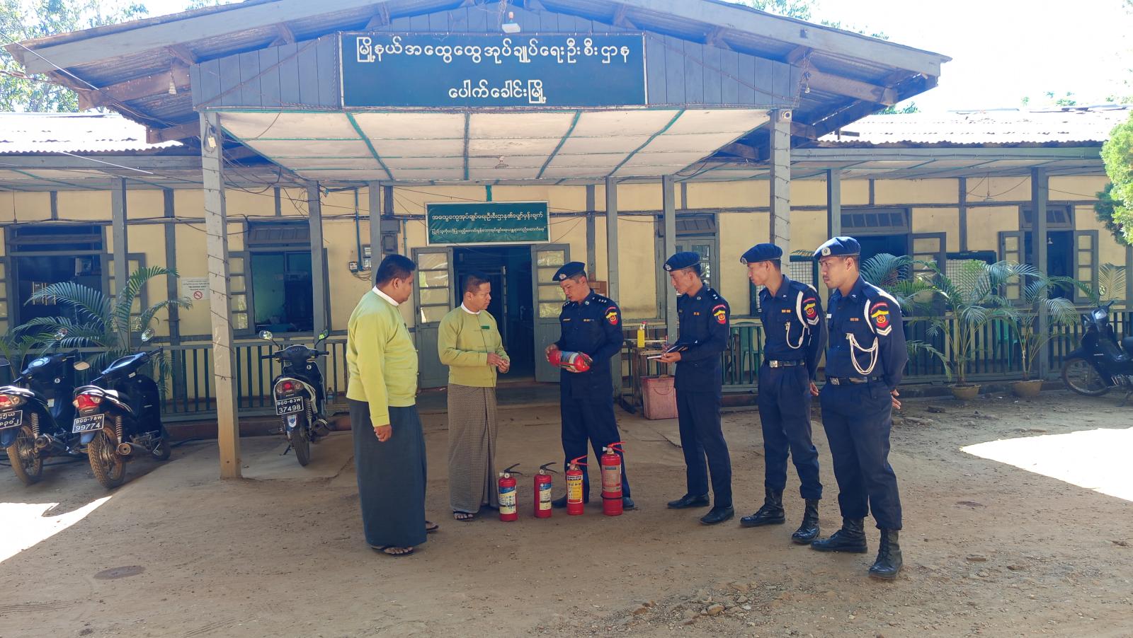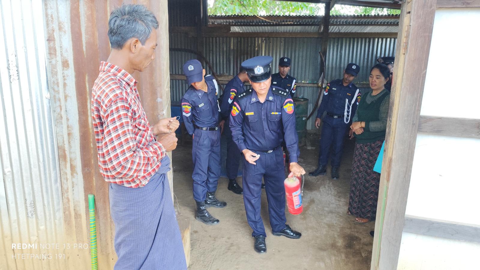 ထိုသို့ဆောင်ရွက်ရာတွင် မြို့နယ်မီးသတ်ဦးစီးဌာနမှ မြို့နယ်မီးသတ်ဦးစီးမှူး ဦးမျိုးသူအောင်နှင့် မီးသတ်ဝန်ထမ်းများက မြို့နယ်အတွင်းရှိ ဌာနဆိုင်ရာရုံးအဆောက်အအုံများ၊ လူနေအိမ်များနှင့် စက်သုံးဆီအရောင်းဆိုင်များတွင် မီးလောင်မှု၊ မီးလန့်မှုများမဖြစ်ပွားစေရေး မီးဘေးကြိုတင်ကာကွယ်ရေးလုပ်ငန်းများ စနစ်တကျဆောင်ရွက်စေရေးနှင့် မိမိတို့ပတ်ဝန်းကျင်တွင် မီးလောင်လွယ်သည့် စွန့်ပစ်ပစ္စည်းများနှင့် အမှိုက်များမရှိစေရေး မြို့နယ်မီးသတ်ဦးစီးဌာနမှ စနစ်တကျကွင်းဆင်းစစ်ဆေးဆောင်ရွက်ခဲ့ပြီး လိုအပ်သည်များကို လမ်းညွန်မှာကြားခဲ့ကြောင်း သိရသည်။