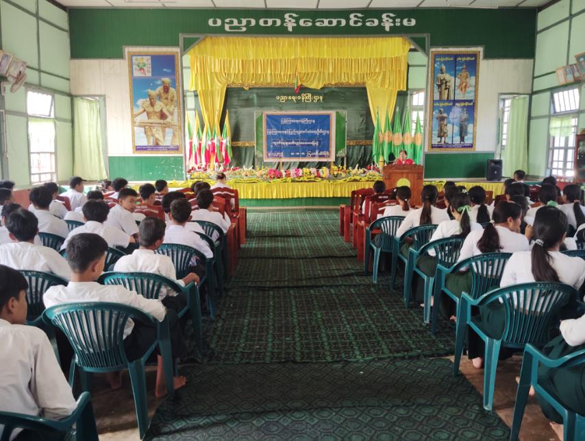 အခမ်းအနားတွင် မြို့နယ်ရဲတပ်ဖွဲ့မှူး လူကုန်ကူးမှုအန္တရာယ်များကိုလည်းကောင်း၊ ဒုတိယရဲမှူးက လူကုန်ကူးမှု ဖြစ်ပွားရခြင်းအကြောင်းရင်းနှင့် လူကုန်ကူးမှုဖြစ်စဥ်များကို လည်းကောင်း၊ မြို့နယ်ဥပဒေအရာရှိက လူကုန်ကူးမှုဆိုင်ရာ ပြစ်မှုပြစ်ဒဏ်များကိုလည်းကောင်း၊ လူမှုဝန်ထမ်းဦးစီးဌာမှ တာဝန်ရှိသူတစ်ဦးက ကလေးသူငယ် အခွင့်အရေးဆိုင်ရာများအားလည်းကောင်း၊ ပြန်ကြားရေးနှင့်ပြည်သူ့ဆက်ဆံရေးဦးစီးဌာန ဦးစီးအရာရှိက စာဖတ်ခြင်း၏အကျိုးကျေးဇူးများနှင့် သဘာဝပတ်ဝန်းကျင်ထိန်းသိမ်းရေးတို့ကိုလည်းကောင်း၊ မြို့နယ်ဥပဒေဆိုင်ရာအထောက်အကူပေးရေးအဖွဲ့မှ အဖွဲ့ဝင်ဒေါ်နန်းညွန့်ညွန့်ခင်က အမျိုးသမီးများအပေါ်အကြမ်းဖက်မှုပပျောက်ရေးနှင့် ကလေးအလုပ်သမားပပျောက်ရေးဆိုင်ရာ အကြောင်းအရာများကို ဟောပြောခဲ့ကြကြောင်းနှင့် ကျောင်းသား/ ကျောင်းသူ (၁၈၀) ဦး ခန့်တက်ရောက်ခဲ့ကြောင်း သိရသည်။