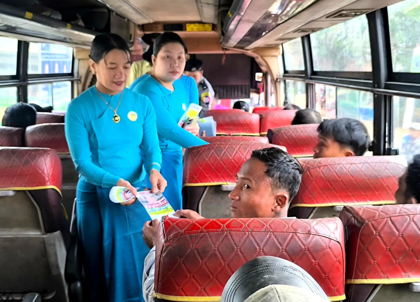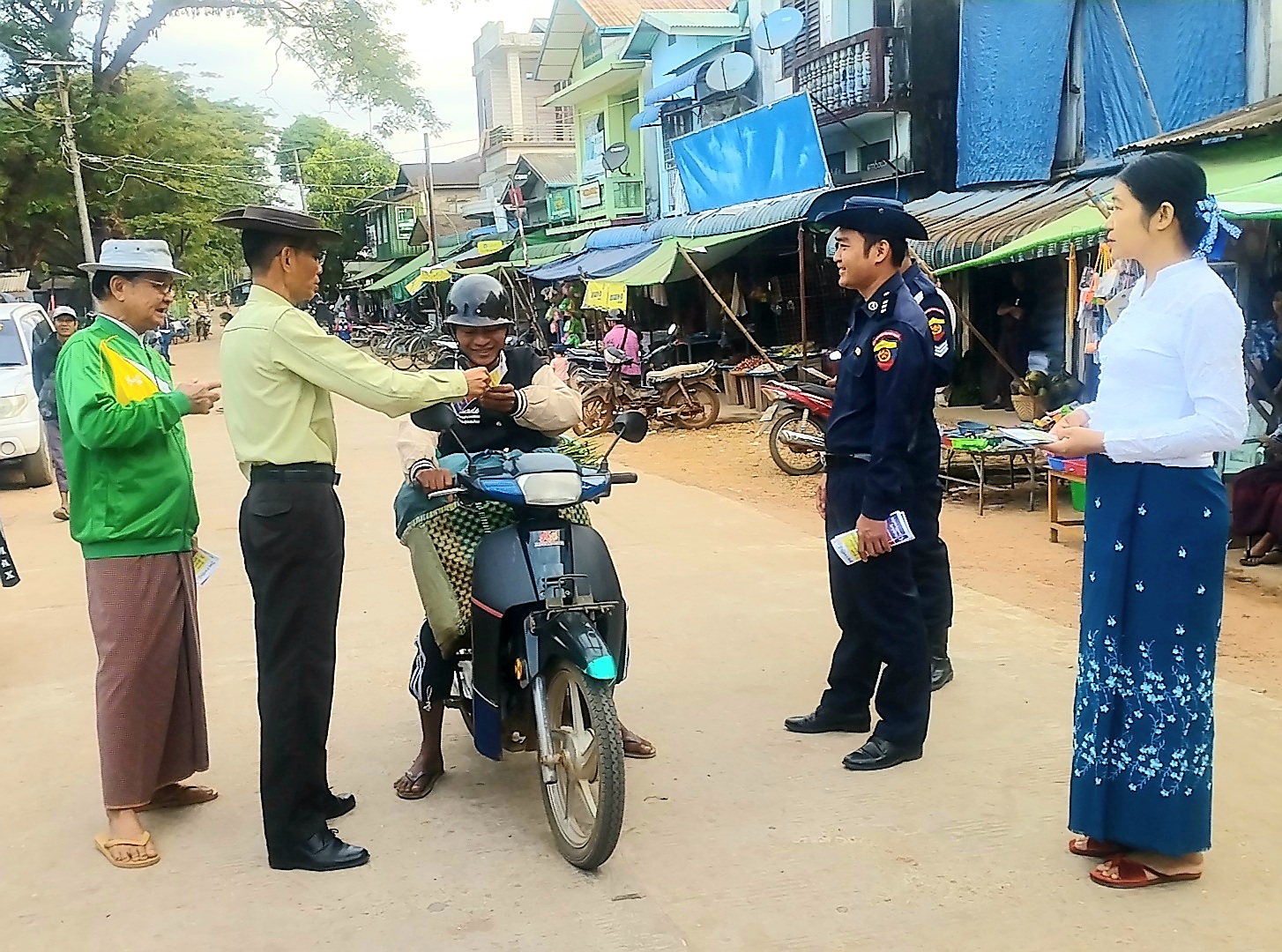 ဈေးရောင်း/ဈေးဝယ်ပြည်သူများ၊ လမ်းသွားလမ်းလာပြည်သူများ၊ မော်တော်ယာဉ်ဂိတ်များရှိ ခရီးသွားပြည်သူများအား ရွှေးကောက်ပွဲနှင့်ပတ်သက်၍ ကျယ်ပြန့်ပြန့်သိရှိစေရန်အတွက် "ဒို့အတူမဲပေးကြမည်" လက်ကမ်းစာစောင်ပါ"ဒီမိုကရေစီကို ပြန်လည်ဖော်ဆောင်ဖို့အတွက် ရွေးကောက်ပွဲမှလွဲ၍အခြားနည်းမရှိပါ၊ ပြည်သူများလိုလားသည့် ဒီမိုကရေစီနိုင်ငံတော်ကို ရွေးကောက်ပွဲဖြင့်သာ ဖော်ဆောင်နိုင်ပါသည်၊ ဒီမိုကရေစီခိုင်မြဲဖို့ မဲရုံသွားပြီး မဲပေးကြပါစို့၊ နိုင်ငံဖွံ့ဖြိုးတိုးတက်ဖို့ ဦးဆောင်နိုင်သူ ရွေးချယ်ကြပါစို့ရွေးကောက်ပွဲမှသည် ပိုမိုကောင်းမွန်သော အနာဂတ်ဆီသို့ "စသည့် ဆောင်ပုဒ်များပါရှိသည့် အသိပညာပေး လက်ကမ်းစာစောင်များအား ပြည်သူများလက်ဝယ်သို့ ဖြန့်ဝေပေးခဲ့ကြကြောင်း သိရသည်။