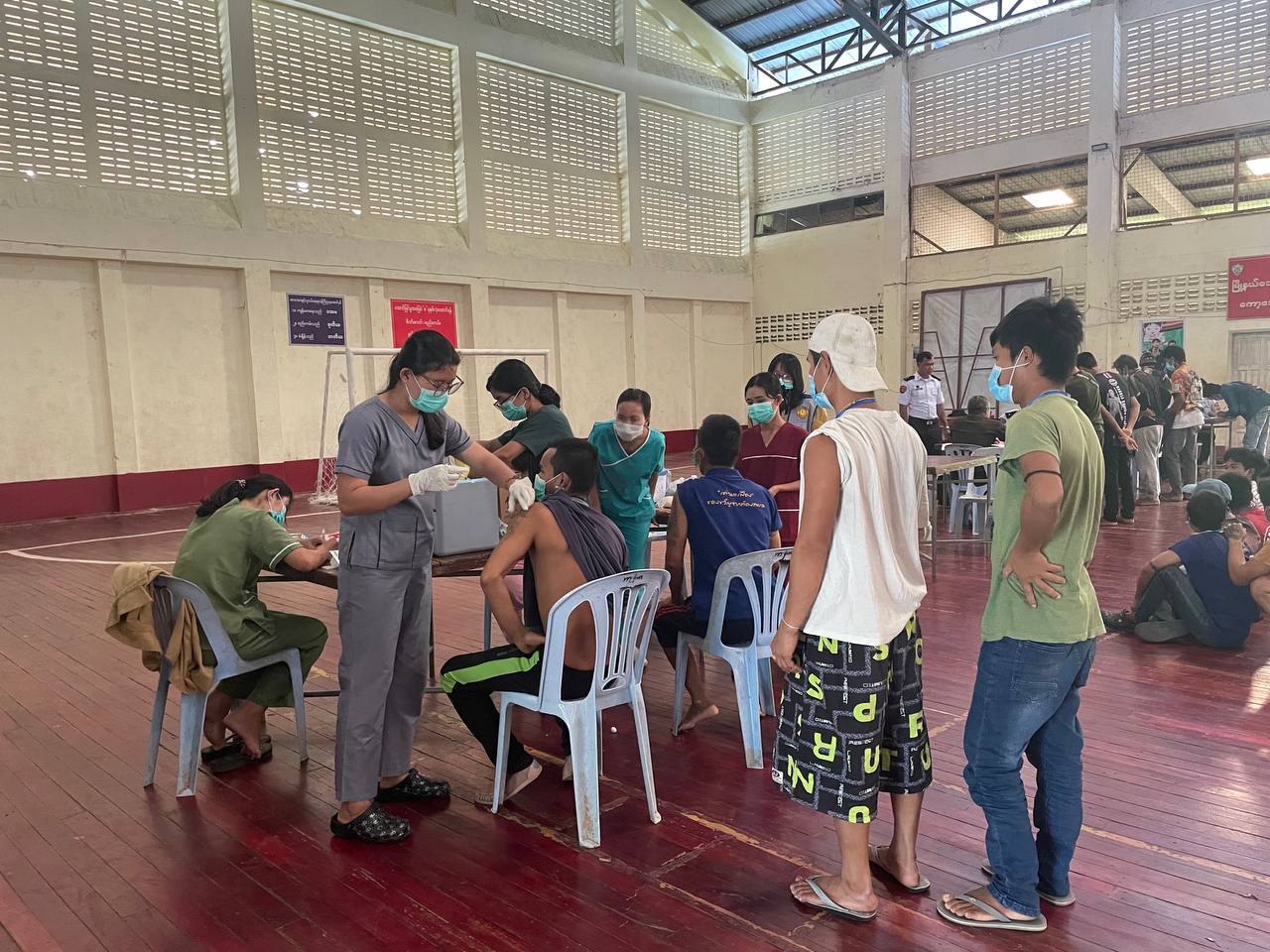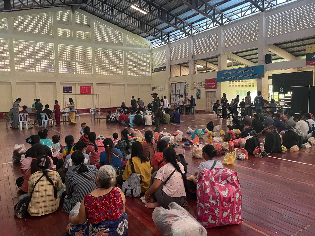 အဆိုပါ ပြန်လည်ဝင်ရောက်လာသည့်နေရပ်ပြန်များအား သက်ဆိုင်ရာဌာန အဖွဲ့အစည်းအသီးသီးမှ တာဝန်ရှိသူများက စနစ်တကျလွှဲပြောင်းလက်ခံဆောင်ရွက်ခဲ့ပြီး နဝရတ်အားကစားခန်းမတွင် ကျန်းမာရေးဌာနမှတာဝန်ရှိသူများ ကျန်းမာရေးစစ်ဆေး၊ ကုသပေးခြင်း၊ ကိုဗစ်ကာကွယ်ဆေးထိုးနှံပေးခြင်း ဆောင်ရွက်၍ သက်ဆိုင်ရာဌာနအသီးသီးမှ ကိုယ်ရေးအချက်အလက်များ ကောက်ယူခြင်း၊ လူဝင်မှုကြီးကြပ်ရေးနှင့်ပြည်သူ့အင်အားဝန်ကြီးဌာနမှ တာဝန်ရှိသူများက (UID) Smart card ဆောင်ရွက်ခြင်းနှင့် လိုအပ်သည်များ ဆက်လက်ဆောင်ရွက်ကြသည်။