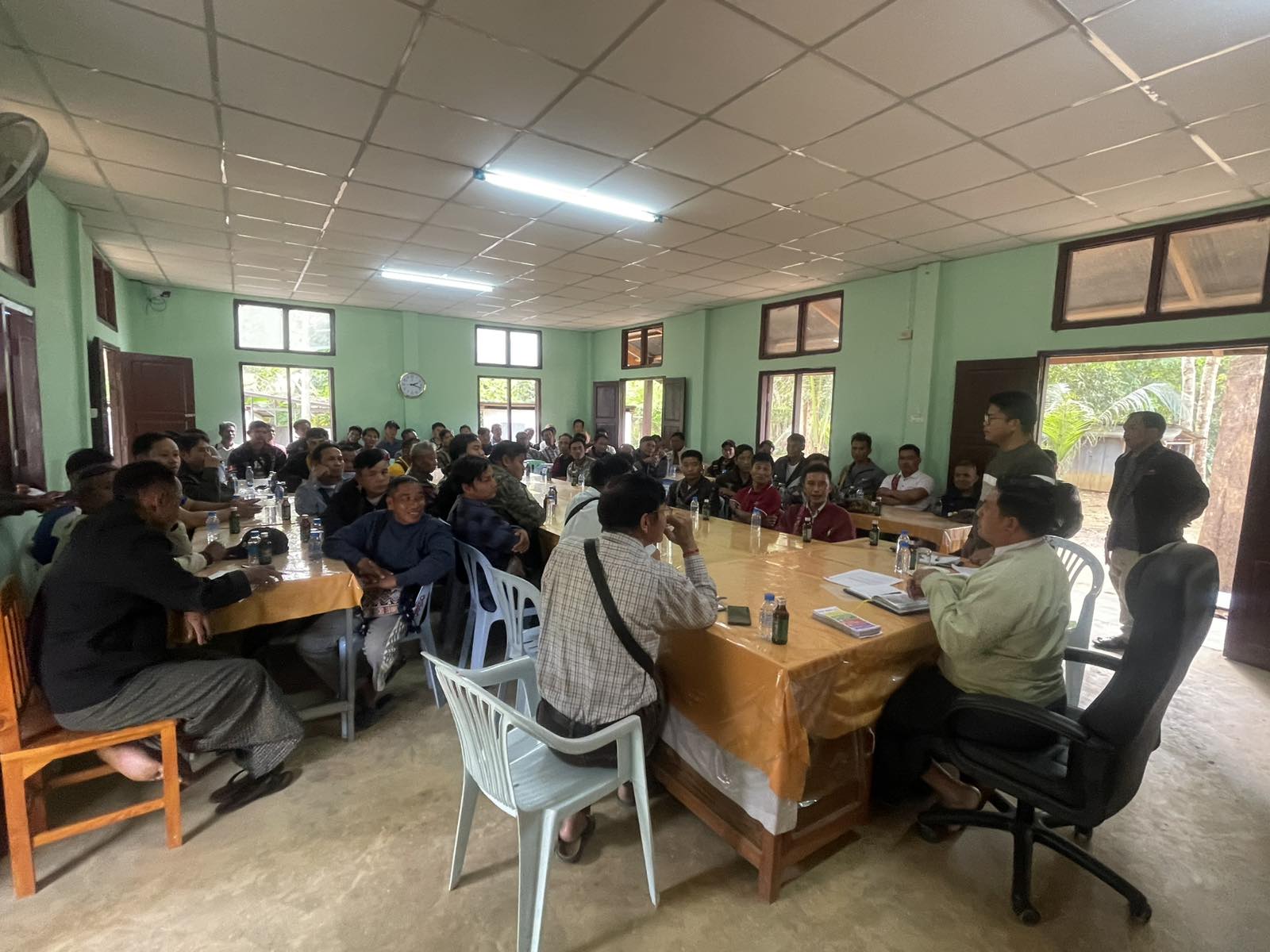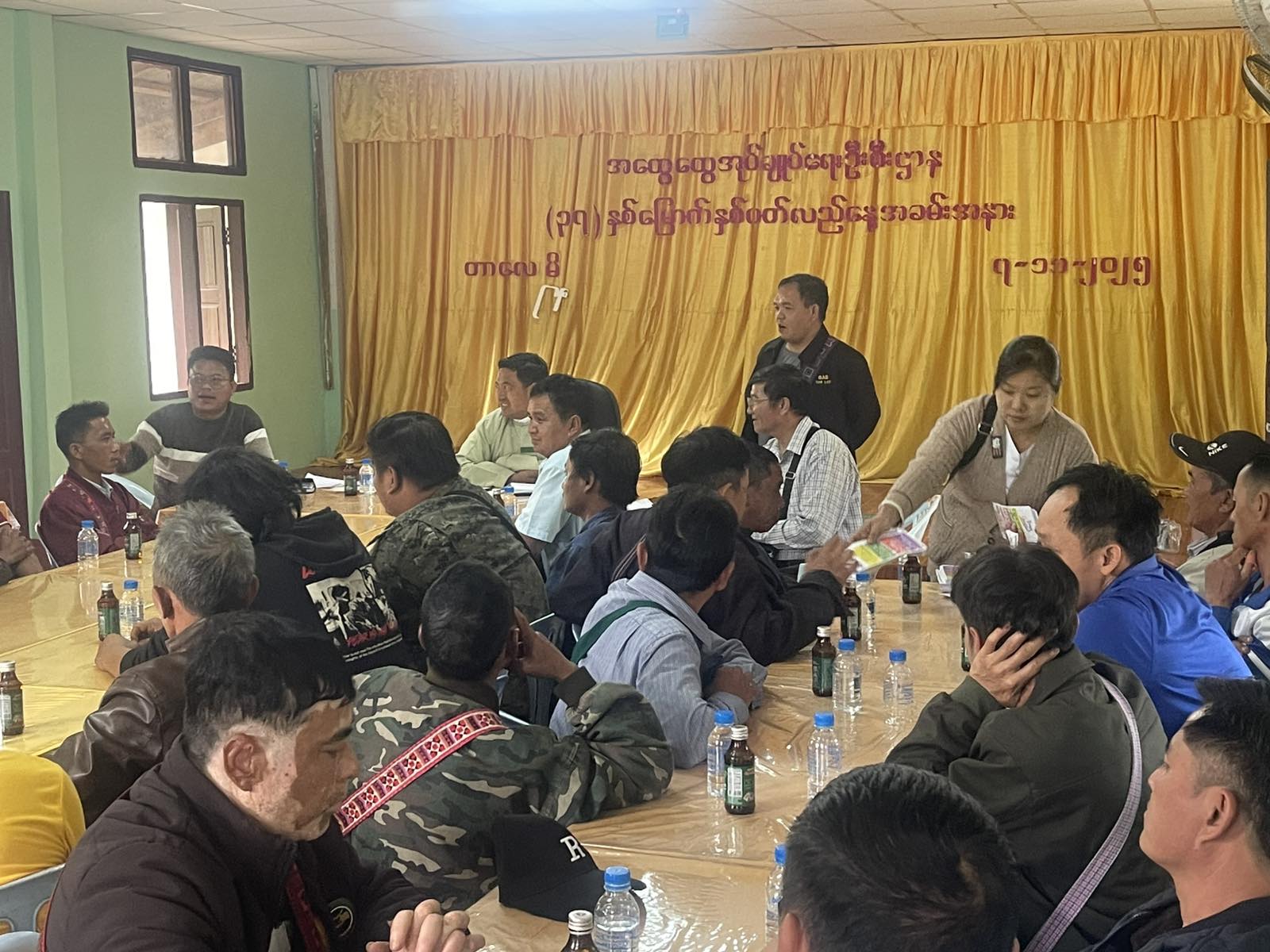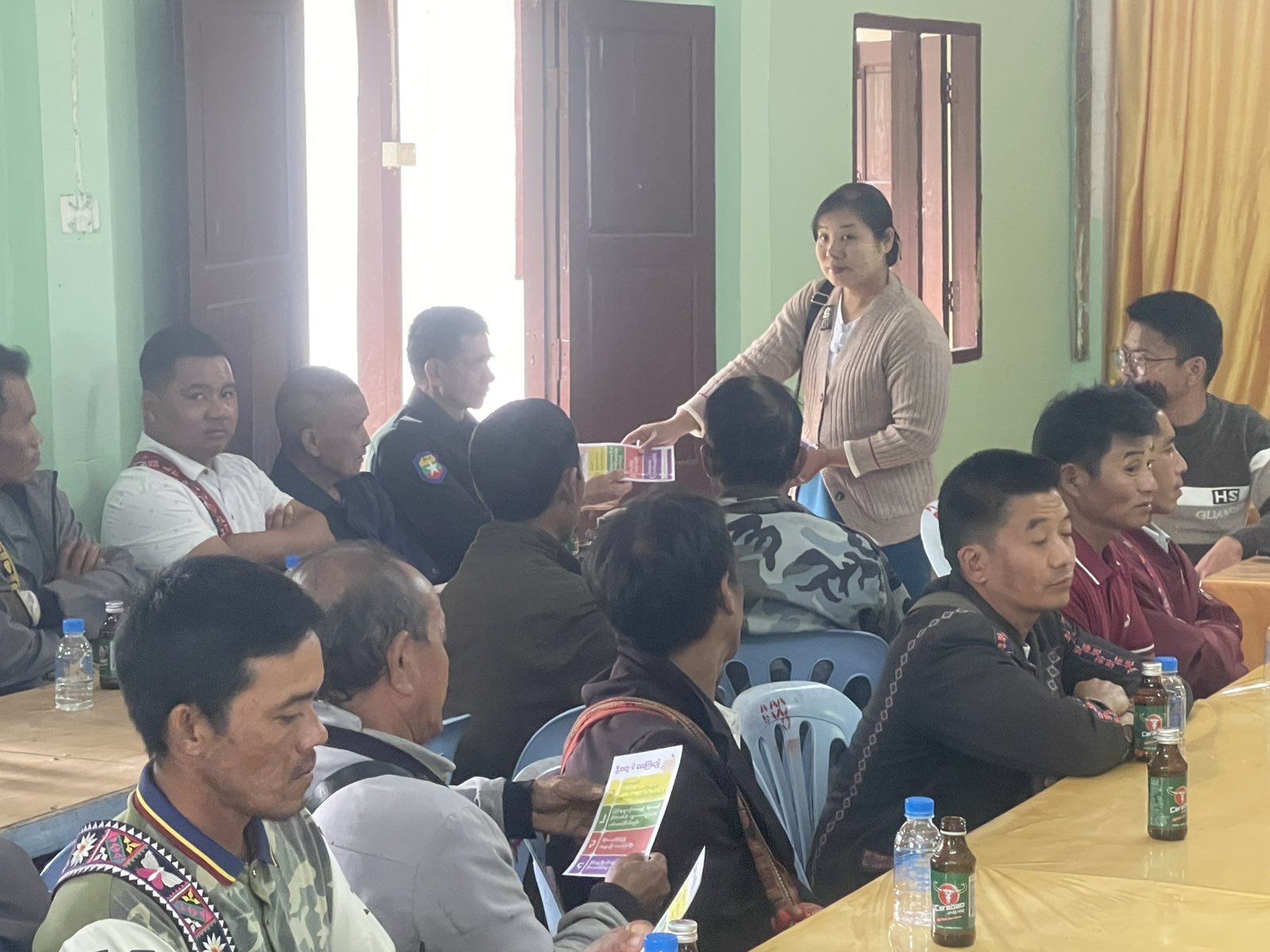 ထို့နောက် အဆိုပါအစည်းအဝေးအပြီးတွင် ပြန်ကြားရေးနှင့်ပြည်သူ့ဆက်ဆံရေးဦးစီးဌာနမှ ဝန်ထမ်းများက အစည်းအဝေးသို့ တက်ရောက်လာကြသူများအား “ဒို့အတူတူမဲပေးကြမယ်” လက်ကမ်းစာစောင်များ ဖြန့်ဝေပေးခဲ့ကြောင်း သိရသည်။