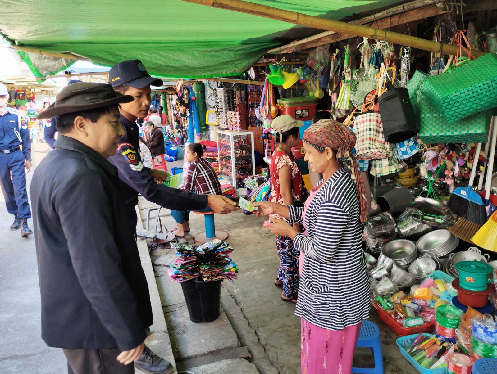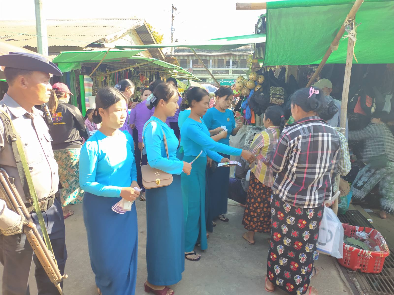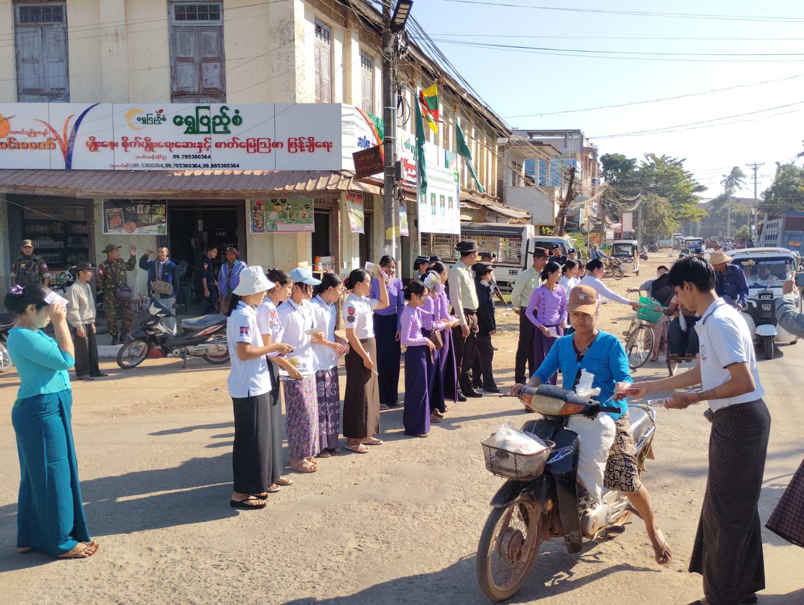 ရွေးကောက်ပွဲတွင် ပြည်သူများအားလုံးပါဝင်နိုင်ရန်အတွက် “ဒို့အတူတူမဲပေးကြမယ်” အသိပညာပေးလက်ကမ်းစာစောင်များကို မြို့နယ်အထွေထွေအုပ်ချုပ်ရေးဦးစီးဌာန ဒုတိယမြို့နယ်အုပ်ချုပ်ရေးမှူး ဦးကျော်လင်းနှင့် ဝန်ထမ်းများ၊ မြို့နယ်လူဝင်မှုကြီးကြပ်ရေးနှင့် ပြည်သူ့အင်အားဝန်ကြီးဌာနမှဝန်ထမ်းများ၊ မြိုနယ်ကော်မရှင်အဖွဲ့ဝင်များ၊ အမျိုးသမီးရေးရာကော်မတီ၊ မိခင်နှင့်ကလေးစောင့်ရေးအသင်းအဖွဲ့ဝင်များ၊ ပြန်ကြားရေးနှင့်ပြည်သူ့ဆက်ဆံရေးဦးစီးဌာနဝန်ထမ်းများ၊ ဌာနဆိုင်ရာအဖွဲ့များသည် ယနေ့နံနက် ၉ နာရီက လက်ပံတန်းမြို့ (၁) လမ်းအဝိုင်းနှင့် မြို့မဈေးအတွင်း၌ ဖြန့်ဝေပေးကြသည်။