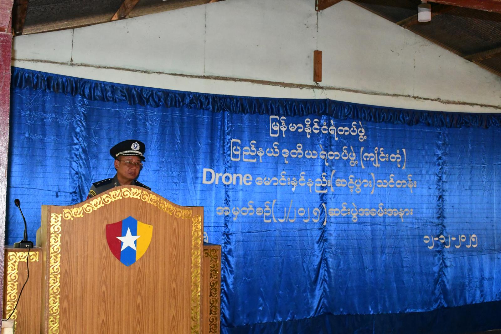 ရှမ်းပြည်နယ်(အရှေ့ပိုင်း)၊ ပြည်နယ်ဒုတိယရဲတပ်ဖွဲ့(ကျိုင်းတုံ)မှ ကြီးမှူးဖွင့်လှစ်သည့် Drone မောင်းနှင်နည်း (ဆင့်ပွား)သင်တန်း အမှတ်စဉ်(၁/၂၀၂၅)ဖွင့်ဆင်းပွဲကို ယနေ့နံနက် (၉) နာရီက ကျိုင်းတုံမြို့၊ အမှတ်(၁)ရပ်ကွက်၊ သစ်တစ်ပင်တောင်၊ မြဝတီရဲသင်တန်းခန်းမ၌ ကျင်းပသည်။