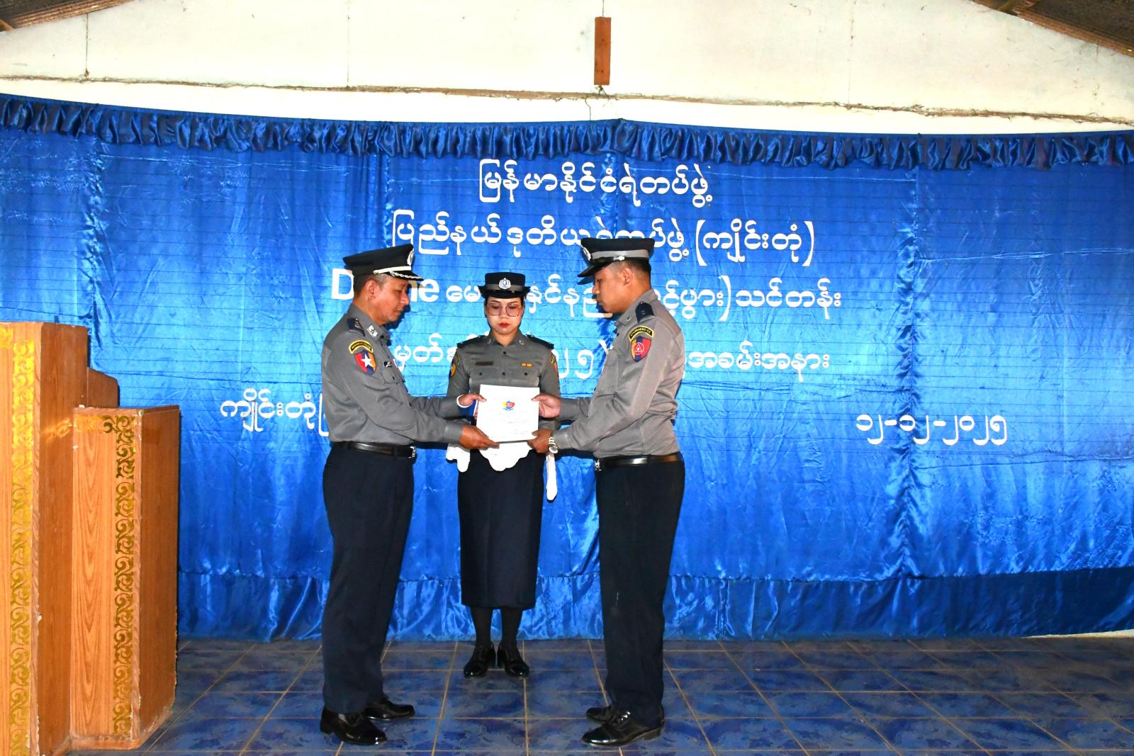 သင်တန်းဆင်းပွဲတွင် ပြည်နယ်ဒုတိယရဲတပ်ဖွဲ့မှူး(ကျိုင်းတုံ) ရဲမှူးကြီး နေမျိုးထွဋ်က အမှာစကားပြောကြားပြီး သင်တန်းဆင်းလက်မှတ်များပေးအပ်သည်။ သင်တန်းသို့ ရှမ်းပြည်နယ် (အရှေ့ပိုင်း)မှ ရဲတပ်ဖွဲ့ဝင် အရာရှိနှင့် အခြားအဆင့် စုစုပေါင်း ၃၀ ဦး တက်ရောက်ပြီး ဒီဇင်ဘာလ (၁) ရက်မှ (၁၂) ရက်အထိ သင်ကြားပို့ချခဲ့ကြောင်း သိရသည်။