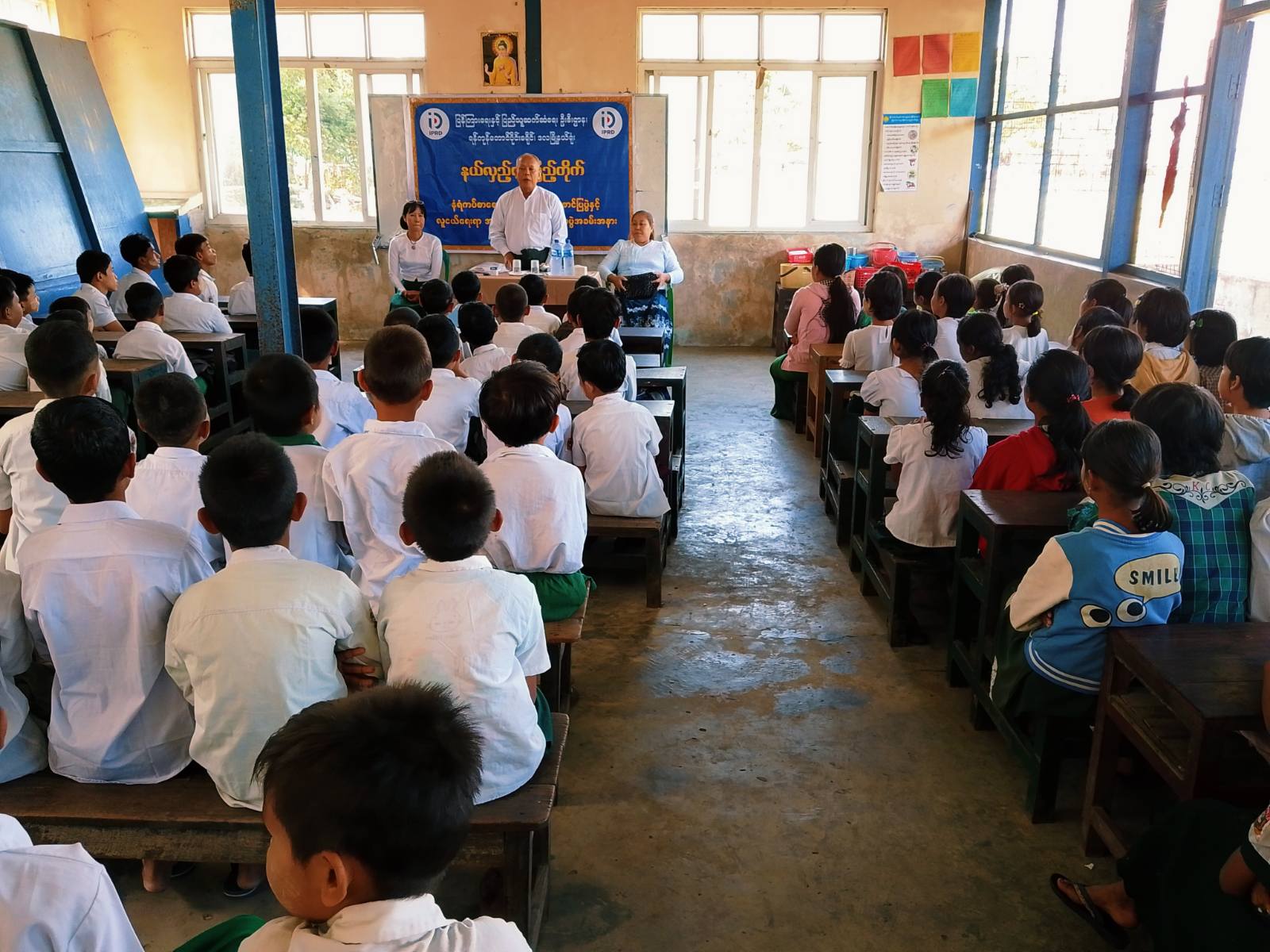 ဦးစွာဟောပြောပွဲတွင် မြို့နယ်စီမံခန့်ခွဲရေးနှင့် အုပ်ချုပ်ရေးကော်မတီအဖွဲ့၊ အဖွဲ့ဝင် ဦးရွှေလှိုင်က အဖွင့်အမှာစကားပြောကြားပြီး မြို့နယ်ပြန်ကြားရေးနှင့်ပြည်သူ့ဆက်ဆံရေးဦးစီးဌာနမှ ဦးစီးအရာရှိ ဒေါ်သီတာဝင်းက စာဖတ်ရှိန်မြှင့်တင်ရေးနယ်လှည့်စာကြည့်တိုက် ဟောပြောပွဲဆောင်ရွက်ရခြင်း၏ ရည်ရွယ်ချက်နှင့် ယနေ့မျိုးဆက်သစ်လူငယ်များမှာ နိုင်ငံတော်၏ အနာဂတ်ဖြစ်ကြောင်း၊ မျိုးဆက်သစ်လူငယ်များ ကာယ၊ ဉာဏ၊ စာရိတ္တ၊ ဘောဂ၊ မိတ္တစတဲ့ ဗလငါးတန်ဖွံ့ဖြိုးတိုးတက်ပြီး လူငယ်တိုင်းနိုင်ငံ့သားကောင်းများ ဖြစ်လာစေရန်၊ လူငယ်များအနေဖြင့် ရည်ရွယ်ချက်၊ ရည်မှန်းချက်များထားရှိရန်၊ စိတ်ပိုင်းဆိုင်ရာနှင့် ကိုယ်လက်ကြံ့ခိုင်စေရေးအထူးအလေးထားဂရုပြုရန်၊ လူတော်လူကောင်းလေးများ ဖြစ်လာစေရန် ငယ်ရွယ်စဉ်ကပင် စာအုပ်စာပေများကို များများဖတ်မှတ်လေ့လာဆည်းပူးကြစေလိုကြောင်းနှင့် စာပေဖတ်ရှုရခြင်း၏ အကျိုးကျေးဇူးများအကြောင်း အသိပညာပေးဟောပြောခဲ့သည်။ ထို့နောက် ကျောင်းစာကြည့်တိုက်များ ဖွံ့ဖြိုးတိုးတက်စေရန်အတွက် သုတ၊ ရသစာအုပ်များကို ကျောင်းအုပ်ဆရာမကြီး ဒေါ်အိကျော်ဇောအား လှူဒါန်းခဲ့ပြီး ကျောင်းအုပ်ဆရာမကြီးက ကျေးဇူးတင် စကားပြန်လည်ပြောကြားခဲ့သည်။