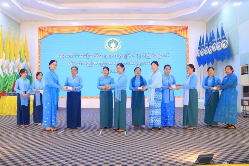 ဆက်လက်ပြီး တာဝန်ရှိသူများက အဖွဲ့ဝင်သစ်များအား အဖွဲ့ဝင်ကတ်နှင့်ရင်ထိုးတံဆိပ်များတပ်ဆင်ပေးခြင်း၊ ရပ်ကွက်/ကျေးရွာများနှင့် စီမံချက်ကျေးရွာများသို့ အဖွဲ့ဝင်ဝတ်စုံများပေးအပ်ခြင်း၊ ကရင်ပြည်နယ်အမျိုးသမီးရေးရာအဖွဲ့သို့ အလှူရှင်များမှ အလှူငွေပေးအပ်ခြင်းနှင့် ဂုဏ်ပြုမှတ်တမ်းလွှာ ပြန်လည်ပေးအပ်ခဲ့ကြသည်။