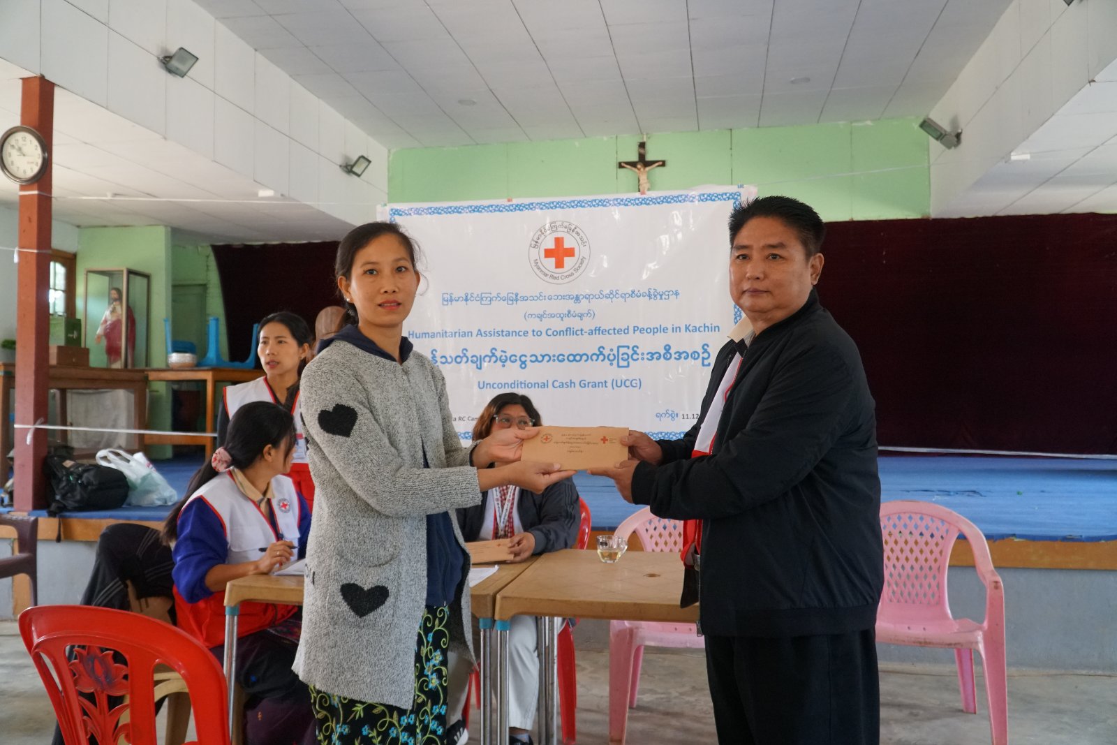 ကချင်ပြည်နယ် ကြက်ခြေနီကြီးကြပ်မှုကော်မတီမှပြုလုပ်သည့် ယာယီနေရပ်စွန့်ခွာပြည်သူများအား ထောက်ပံ့ပေးအပ်ခြင်းအစီအစဉ်တွင် အဆင်မပြေသည့်အိမ်ထောင်စုများ၊ မိသားစုဝင်များသည့် အိမ်ထောင်စုများ၊ အမျိုးသမီးများ ဦးဆောင်နေရသူများ၊ မိသားစုတွင် နာတာရှည်ရောဂါ ခံစားရသူများ၊ မသန်စွမ်းဖြစ်နေသူများစသည့် အချက်များကို စာရင်းပြုစုရွေးချယ်ထောက်ပံ့ခြင်းဖြစ် ကြောင်း သိရသည်။