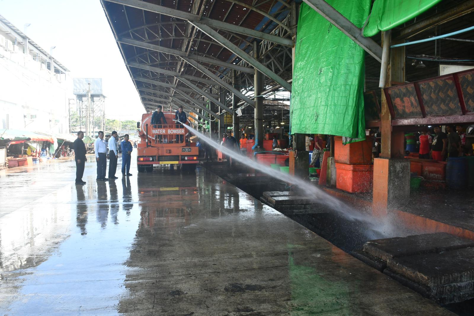 ရန်ကုန်တိုင်းဒေသကြီးဝန်ကြီးချုပ် ဦးစိုးသိန်းနှင့် တိုင်းဒေသကြီးဝန်ကြီးများသည် ယမန်နေ့နံနက်ပိုင်းက သမိုင်းချောင်း၊ သီရိမင်္ဂလာဈေးနှင့် ရွှေပိတောက်ငါးဈေးတို့တွင် ရေးစီးရေလာကောင်းမွန်ရေးနှင့် သန့်ရှင်းသပ်ရပ်ရေးအတွက် လုပ်ငန်းများဆောင်ရွက်နေမှုများအား ကွင်းဆင်းကြည့်ရှုစစ်ဆေးသည်။