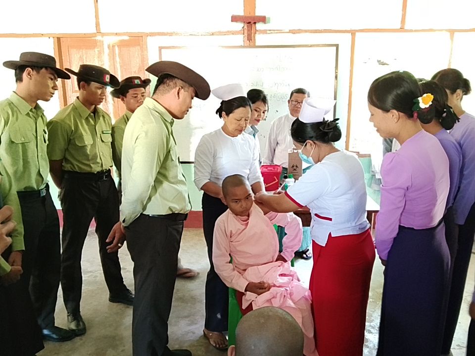 မကွေးတိုင်းဒေသကြီး မင်းဘူးခရိုင် စလင်းမြို့ မြင်တင်ရပ် အခြေခံပညာမူလတန်းကျောင်း၌ ကျောင်းပြင်ပ ပြည်သူထုထု သားအိမ်ခေါင်းကင်ဆာရောဂါကာကွယ်ဆေး(H P V)ထိုးနှံခြင်းလုပ်ငန်းကို အသက် (၉) နှစ်ပြည့်ပြီး (၁၂) နှစ်မကျော်သော ကျောင်းသူများနှင့် သီလရှင်ဆရာလေး များအား သားအိမ်ခေါင်းကင်ဆာရောဂါကာကွယ်ဆေးထိုးနှံပေးလျက်ရှိရာ ယမန်နေ့နံနက် (၉) နာရီခွဲအချိန်က မြင်တင်အခြေခံပညာမူလတန်းကျောင်း၌ ဆောင်ရွက်ခဲ့ကြသည်။