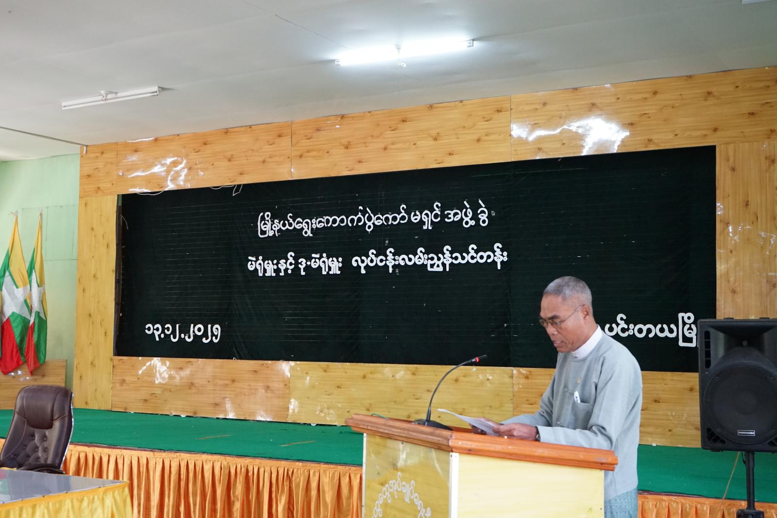 ရှမ်းပြည်နယ်တောင်ပိုင်း၊ ဓနုကိုယ်ပိုင်အုပ်ချုပ်ခွင့်ရဒေသ၊ ပင်းတယမြို့နယ် အထွေထွေအုပ်ချုပ်ရေးဦးစီးဌာန အစည်းအဝေးခန်းမတွင် ယနေ့နံနက် ၉ နာရီအချိန်က ပင်းတယမြို့၌ ၂၀၂၅ ခုနှစ် ပါတီစုံဒီမိုကရေစီအထွေထွေရွေးကောက်ပွဲတွင် မဲရုံများ၌ တာဝန်ယူဆောင်ရွက်ကြမည့် မဲရုံမှူးနှင့် ဒုမဲရုံမှူးသင်တန်းကို ဖွင့်လှစ်သင်ကြားသည်။