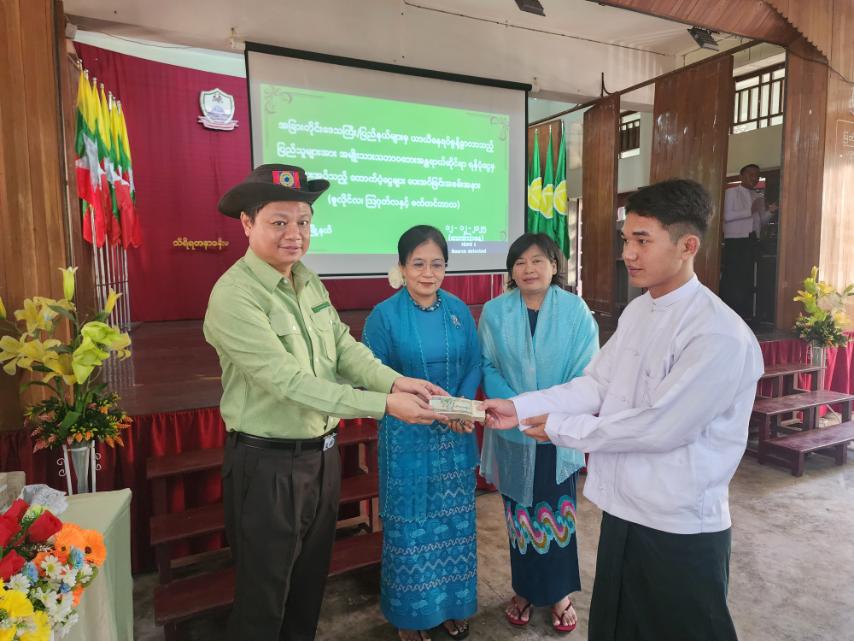 အလုံမြို့နယ်၊ စောရန်ပိုင်တောင်ရပ်ကွက်၊ မင်းရဲကျော်စွာလမ်း၊ ဟားခါးပညာရေးဒီဂရီကောလိပ်ရှိ သီရိရတနာခန်းမ၌ ယနေ့နံနက်ပိုင်းက နေရပ်စွန့်ခွာပြည်သူများအား ထောက်ပံ့ငွေများ ပေးအပ်ခဲ့သည်။