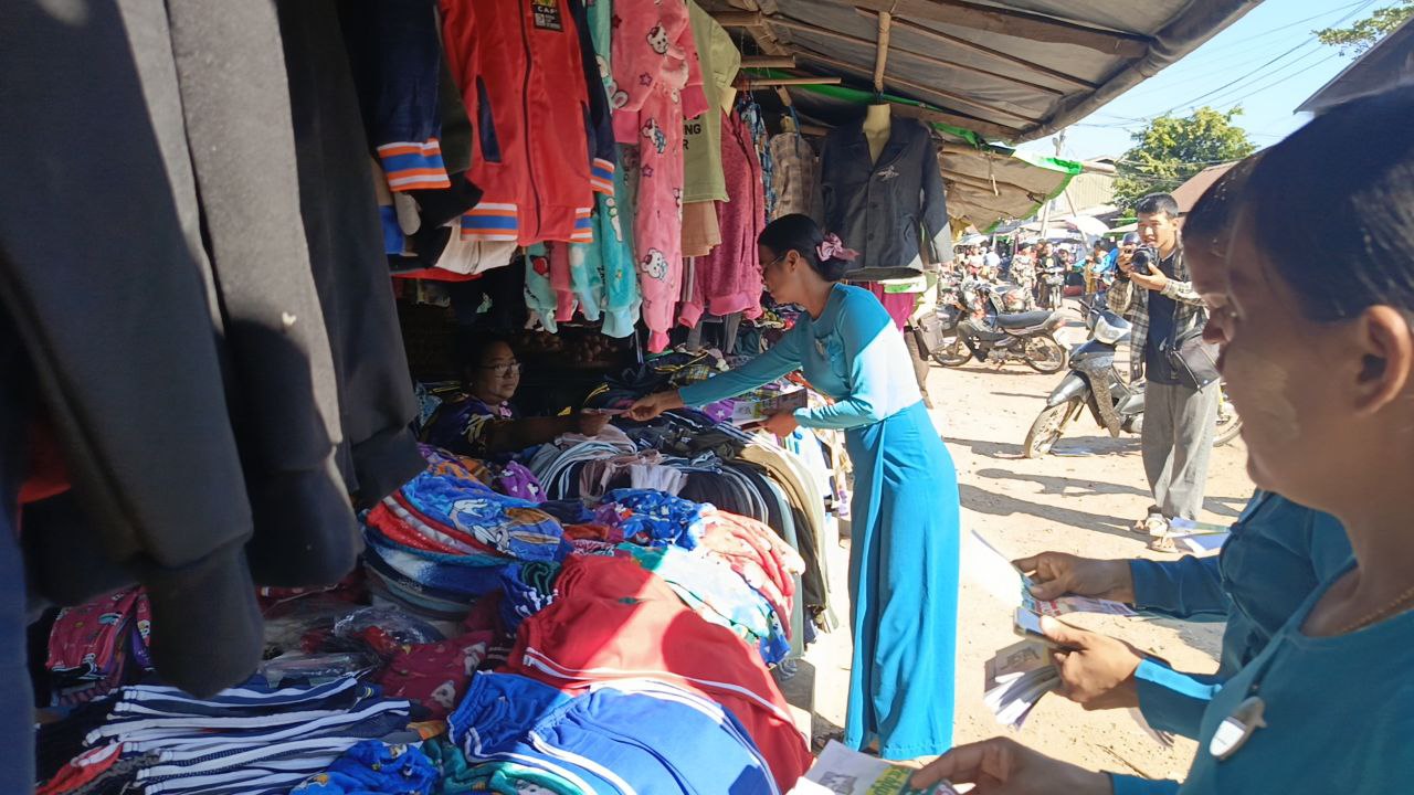 ၂၀၂၅ ခုနှစ်၊ ဒီဇင်ဘာလ ၂၈ ရက်နေ့တွင် ကျင်းပပြုလုပ်မည့် ပါတီစုံဒီမိုကရေစီ အထွေထွေရွေးကောက်ပွဲ၌ ဆန္ဒမဲပေးပိုင်ခွင့်ရှိသည့် မဲဆန္ဒရှင်ပြည်သူများအားလုံး ပါဝင်မဲပေးနိုင်ရေးအတွက် ရွေးကောက်ပွဲအောင်မြင်ရေး လှုံ့ဆော်မှုဖြစ်သည့် ဒို့အတူတူ မဲပေးကြမယ် အသိပညာပေး လက်ကမ်းစာစောင်များကို လယ်ဝေးမြို့၌ ယမန်နေ့ နံနက် ၉ နာရီက သီရိရတနာ မြို့မဈေးနှင့် လူစည်ကားရာနေရာများတွင် အခမဲ့ဖြန့်ဝေပေးခဲ့ကြောင်း သိရသည်။