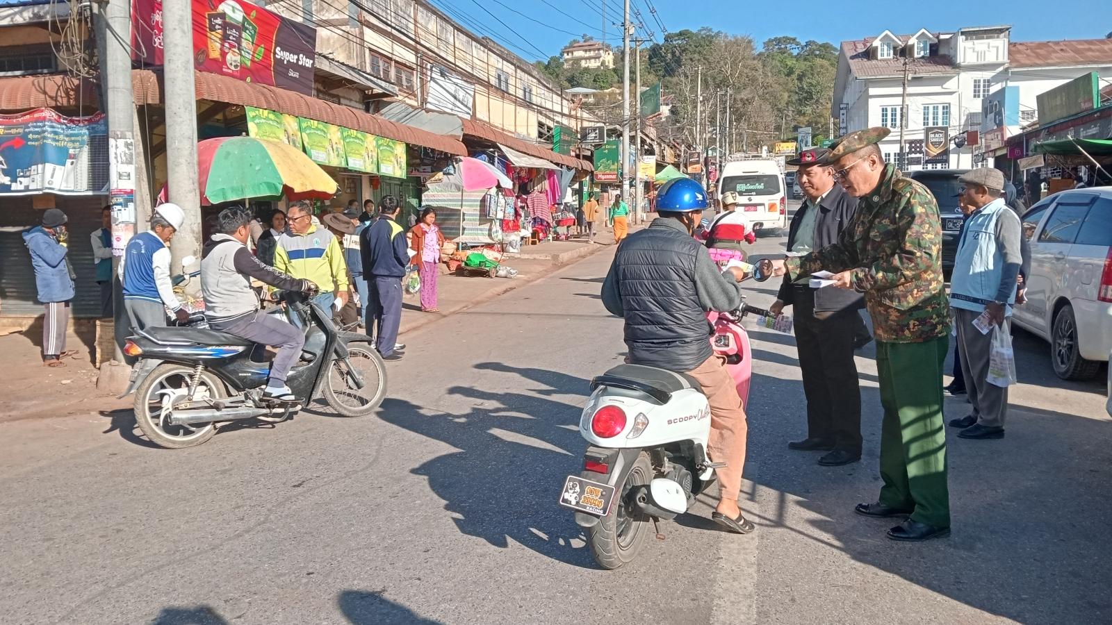 ရှမ်းပြည်နယ်တောင်ပိုင်း၊ ကလောမြို့နယ်တွင် ၂၀၂၅ ခုနှစ်၊ ပါတီစုံဒီမိုကရေစီအထွေထွေရွေးကောက်ပွဲတွင် ဆန္ဒမဲမေးပိုင်ခွင့်ရှိသည့် ပြည်သူများအားလုံး ပါဝင်မဲပေးနိုင်ရေးအတွက် ရွေးကောက်ပွဲအောင်မြင်ရေးလှုံ့ဆော်မှု “ဒို့အတူတူမဲပေးကြမည်” လက်ကမ်းစာစောင်များအား မြို့နယ်စီမံခန့်ခွဲရေးနှင့်အုပ်ချုပ်ရေးကော်မတီဥက္ကဋ္ဌနှင့်အဖွဲ့ဝင်များ၊ မြို့နယ်ရွေးကောက်ပွဲကော်မရှင်အဖွဲ့ခွဲဥက္ကဋ္ဌနှင့်အဖွဲ့ဝင်များ၊ ဌာနဆိုင်ရာတာဝန်ရှိသူများက ဒီဇင်ဘာလ ၁၃ ရက်နေ့နံနက် ၈ နာရီခွဲက ကလောမြို့မစျေးအတွင်းနှင့် လူစည်ကားသည့်နေရာများ၌ လိုက်လံ ဖြန့်ဝေခဲ့သည်။