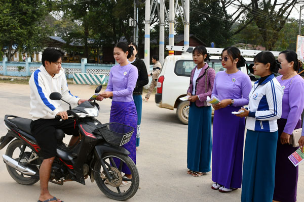 ထို့နောက် တက်ရောက်လာသော ခရိုင်ပြန်ကြားရေးနှင့်ပြည်သူ့ဆက်ဆံရေးဦးစီးဌာနမှ ဝန်ထမ်းများ၊ ဌာနဆိုင်ရာတာဝန်ရှိသူများနှင့် လူမှုရေးအသင်းအဖွဲ့များက “ဒို့အတူတူ မဲပေးကြမယ်” ရွေးကောက်ပွဲလှုံ့ဆော်ရေးလက်ကမ်းစာစောင်များအား ပြည်သူများထံ လက်ဝယ်အရောက် ဖြန့်ဝေပေးခဲ့ကြကြောင်း သိရသည်။