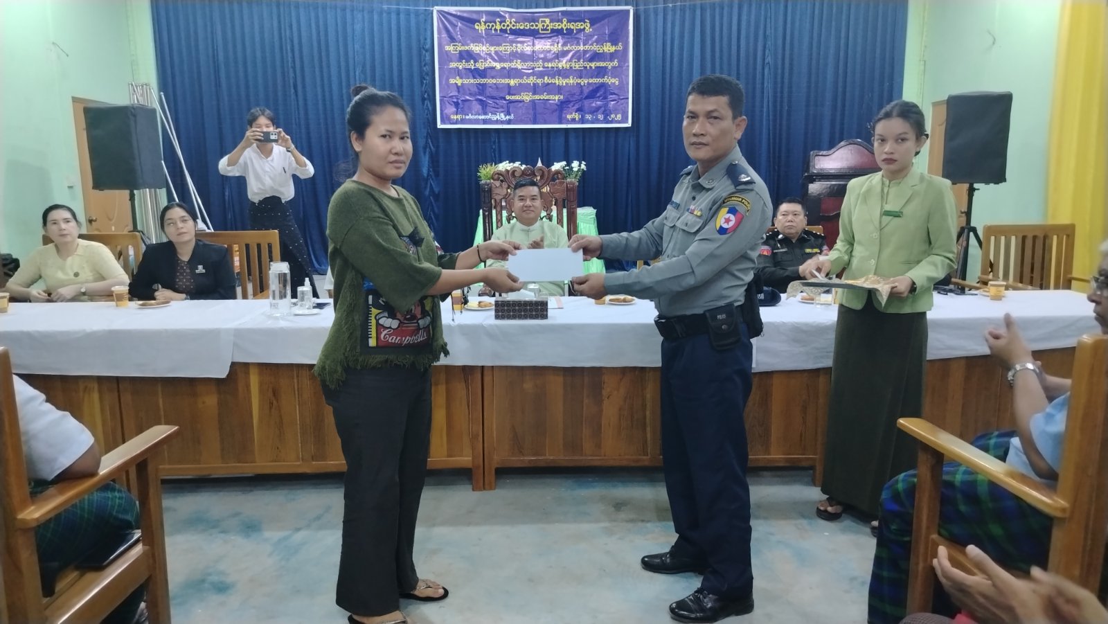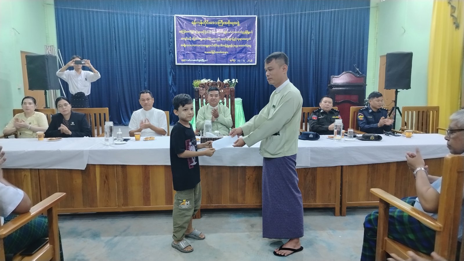 ရန်ကုန်တိုင်းဒေသကြီး၊ ဗိုလ်တထောင်ခရိုင်၊ မင်္ဂလာတောင်ညွန့်မြို့နယ်အတွင်းသို့ အကြမ်းဖက် ဖြစ်စဥ်များကြောင့် ပြောင်းရွှေ့ရောက်ရှိလာသည့် နေရပ်စွန့်ခွာရောက်ရှိလာသူများအား အမျိုးသားသဘာဝဘေးအန္တရာယ်ဆိုင်ရာ စီမံခန့်ခွဲမှုရန်ပုံငွေမှ ထောက်ပံ့ငွေပေးအပ်ပွဲ အခမ်းအနားကို ယမန်နေ့ နံနက် ၁၀ နာရီအချိန်က မြို့နယ်အထွေထွေအုပ်ချုပ်ရေးဦးစီးဌာနရုံး အစည်းအဝေးခန်းမ၌ ကျင်းပပြုလုပ်သည်။