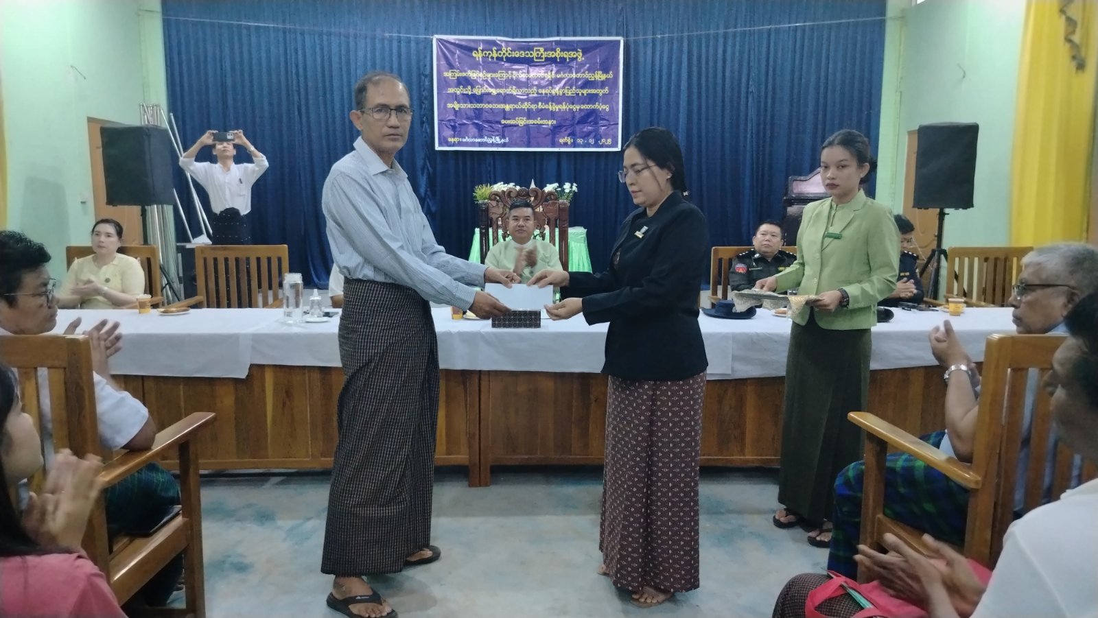 အဆိုပါ အခမ်းအနားသို့ မြို့နယ်စီမံခန့်ခွဲရေးနှင့်အုပ်ချုပ်ရေးကော်မတီဥက္ကဋ္ဌ ဦးမြသိန်းထွန်းနှင့် အဖွဲ့ဝင်များ၊ မြို့နယ်ထောက်ပံ့ရေးအဖွဲ့ဝင်များ၊ ရပ်ကွက်အုပ်ချုပ်ရေးမှူးများ၊ နေရပ်စွန့်ခွာပြည်သူများ တက်ရောက်ခဲ့ကြောင်း သိရသည်။