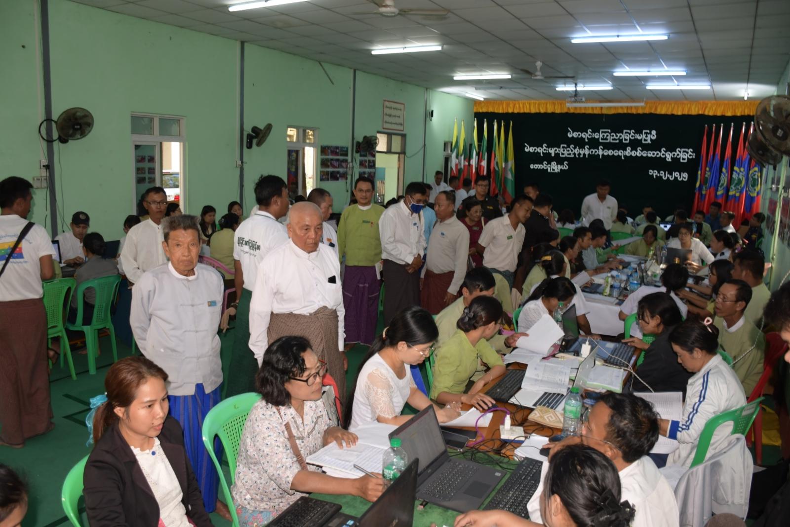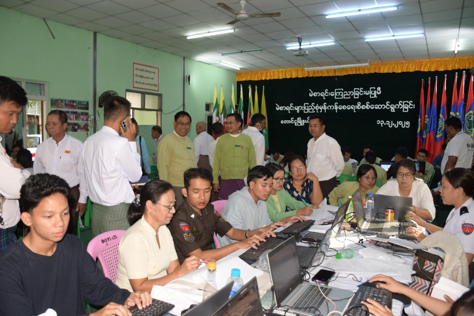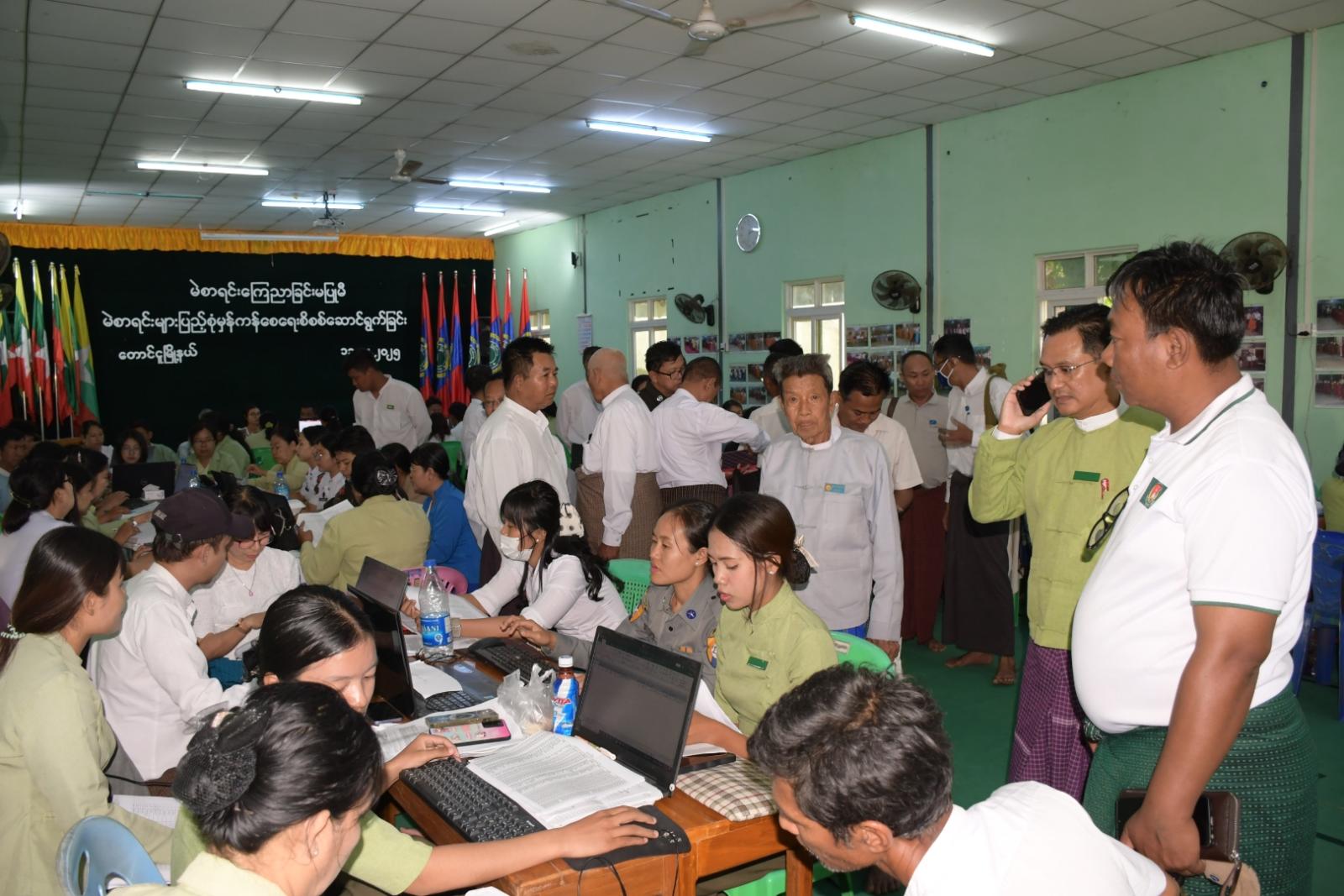ပဲခူးတိုင်းဒေသကြီး၊ တောင်ငူခရိုင်အတွင်း တတိယအကြိမ် မဲဆန္ဒရှင်စာရင်းများ ကြေညာခြင်းမပြုမီ ပြည့်စုံမှန်ကန်စေရေးအတွက် ခရိုင်စီမံခန့်ခွဲရေးနှင့်အုပ်ချုပ်ရေး ကော်မတီဥက္ကဋ္ဌ ဦးစောထွန်းဦးနှင့် အဖွဲ့ဝင်များ ဦးဆောင်၍ မဲဆန္ဒရှင်စာရင်းများ စိစစ်စစ်ဆေးဆောင်ရွက်ခြင်းကို ယမန်နေ့ မွန်းလွဲပိုင်းက ခရိုင်အထွေထွေအုပ်ချုပ်ရေးဦးစီးဌာန ဝင်းအတွင်းရှိ နတ်သျှင်နောင်ခန်းမနှင့် ပြည်သူ့ဝန်ဆောင်မှုရုံးတို့၌ ဆောင်ရွက်သည်။