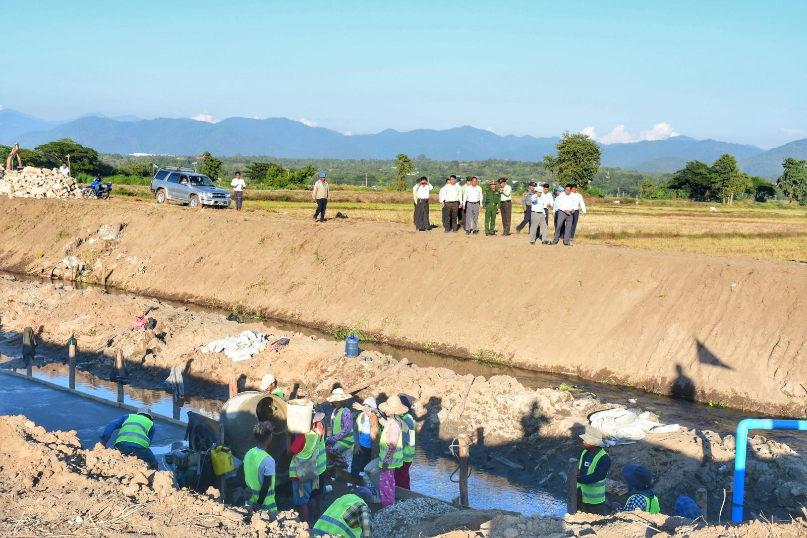 ယင်းနောက် နေပြည်တော်ကောင်စီဥက္ကဋ္ဌ ဦးသန်းထွန်းဦးသည် ဇေယျာသီရိမြို့နယ်၊ သစ်တပ်ကျေးရွာအနီး မပိုက်ကယ်ရိုး ရေနှုတ်မြောင်း ရေစီးရေလာ ကောင်မွန်စေရေး ဆောင်ရွက်ထားရှိမှုနှင့် နေပန်လပန်စနစ်ကျ လယ်ယာမြေအတွင်းရှိ နရဘန်ချောင်းပေါင် အားနည်းသည့်အပိုင်းများအား Gabion Box ကျောက်ဖြည့်မြေထိန်းနံရံ တည်ဆောက်နေမှု အခြေအနေများကို ကြည့်ရှုစစ်ဆေးရာလုပ်ငန်းများ ဆောင်ရွက်နေမှုနှင့် ပတ်သက်၍ တာဝန်ရှိသူများ၏ တင်ပြချက်များအပေါ် နေပြည်တော်ကောင်စီ ဥက္ကဋ္ဌက လုပ်ငန်းများအပိုင်းလိုက် အမြန်ပြီးစီးအောင် ဆောင်ရွက်ရေး၊ ရေရှည်ခိုင်ခံ့မှုရှိအောင် စံချိန်စံညွှန်းနှင့်အညီဆောင်ရွက်ရေး၊ လူအင်အား၊ စက်ယန္တရားအင်းအား တိုးမြှင့်ပြီး လုပ်ငန်းများ အပိုင်းလိုက်အမြန်ပြီးစီးအောင် အင်တိုက်အားတိုက် ဆောင်ရွက်ရန်တို့ကို မှာကြားခဲ့ကြောင်း သိရသည်။