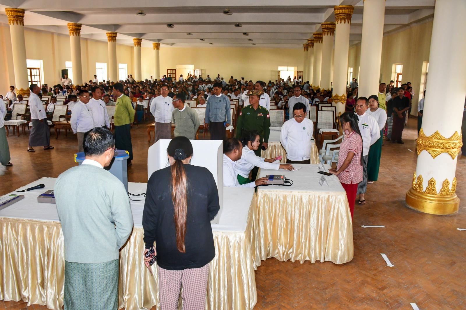 ယင်းနောက် နေပြည်တော်ကောင်စီဥက္ကဋ္ဌနှင့် တာဝန်ရှိသူများက MEVM စက်ဖြင့် ပြည်သူများအား မဲပေးသရုပ်ပြခြင်းနှင့် လက်တွေ့စမ်းသပ်မဲပေးနေမှုကို ကြည့်ရှုအားပေးခဲ့ကြောင်း သိရသည်။