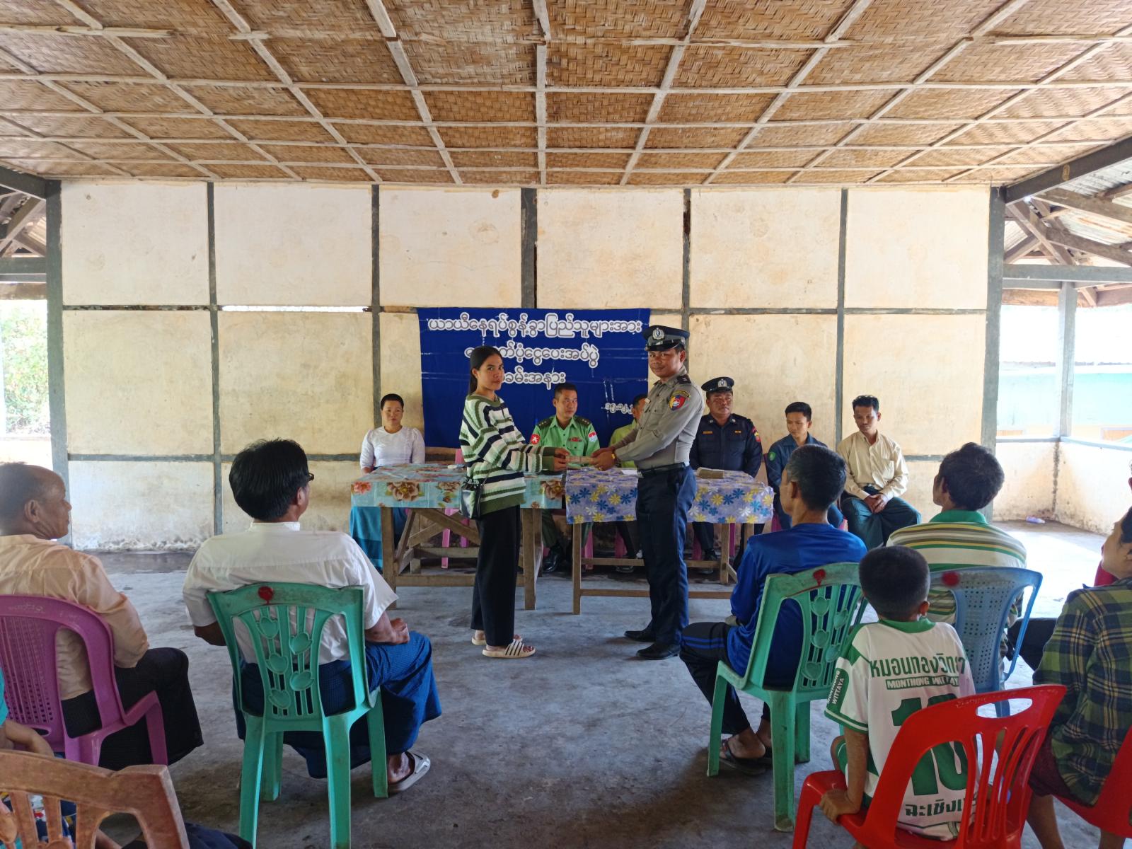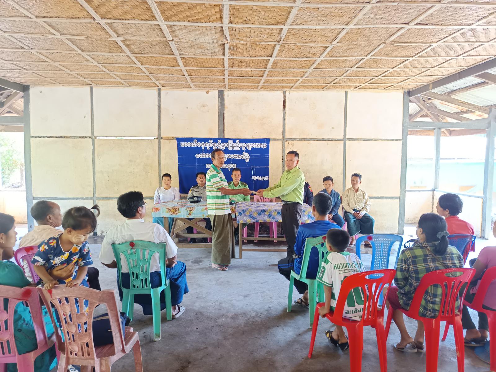 အခမ်းအနားတွင် မြို့အထွေထွေအုပ်ချုပ်ရေးဦးစီးဌာန၊ မြို့အုပ်ချုပ်ရေးမှူး ဦးဇော်မြင့်က အဖွင့်အမှာစကားပြောကြားကာ ယာယီနေရပ်စွန့်ခွာပြည်သူများအား မြို့အုပ်ချုပ်ရေးမှူး ဦးဇော်မြင့်နှင့်အဖွဲ့ဝင်များ၊ နယ်မြေခံတပ် ရင်းမှတာဝန်ရှိသူများ၊ မြို့ဌာနဆိုင်ရာတာဝန်ရှိသူများက ယာယီနေရပ်စွန့်ခွာပြည်သူ ကျား(၁၀)ဦး၊ မ(၆)ဦး၊ ပေါင်း (၁၆)ဦးအား တစ်ဦးလျှင် ၂၀၀၀၀/-ကျပ်နှုန်းဖြင့်(၃၂၀၀၀၀/-) ကျပ်ပေးအပ်ခဲ့သည်။