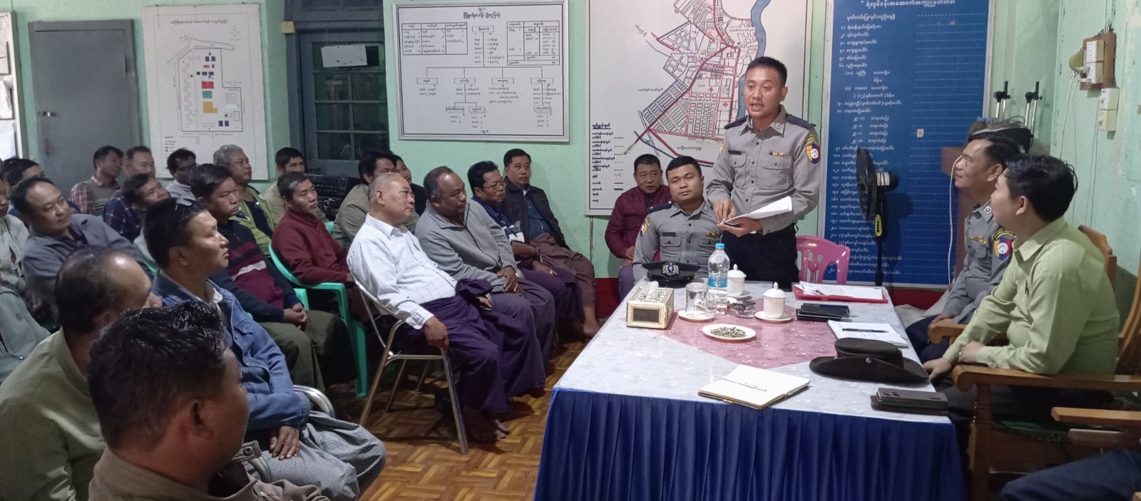 စစ်ကိုင်းတိုင်းဒေသကြီး၊ ရေဦးမြို့ မြို့မရဲတပ်ဖွဲ့စခန်း ရဲတပ်ဖွဲ့မှူးရုံး အစည်းအဝေးခန်းမတွင် ယမန်နေ့နံနက် ၁၀ နာရီက မော်တော်ယာဉ်ပိုင်ရှင်များ ယာဉ်စည်းကမ်းလမ်းစည်းကမ်း လိုက်နာဆောင်ရွက်ရေးနှင့် ရွေးကောက်ပွဲဆိုင်ရာ ဥပဒေ၊ နည်းဥပဒေအကြောင်း အသိပညာပေး ဆွေးနွေးခဲ့ကြသည်။