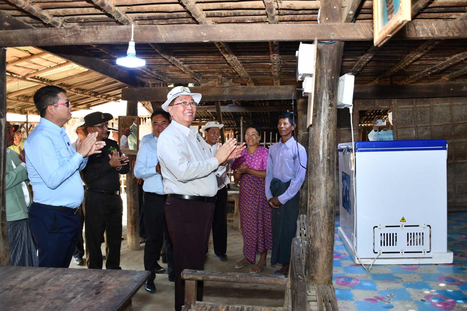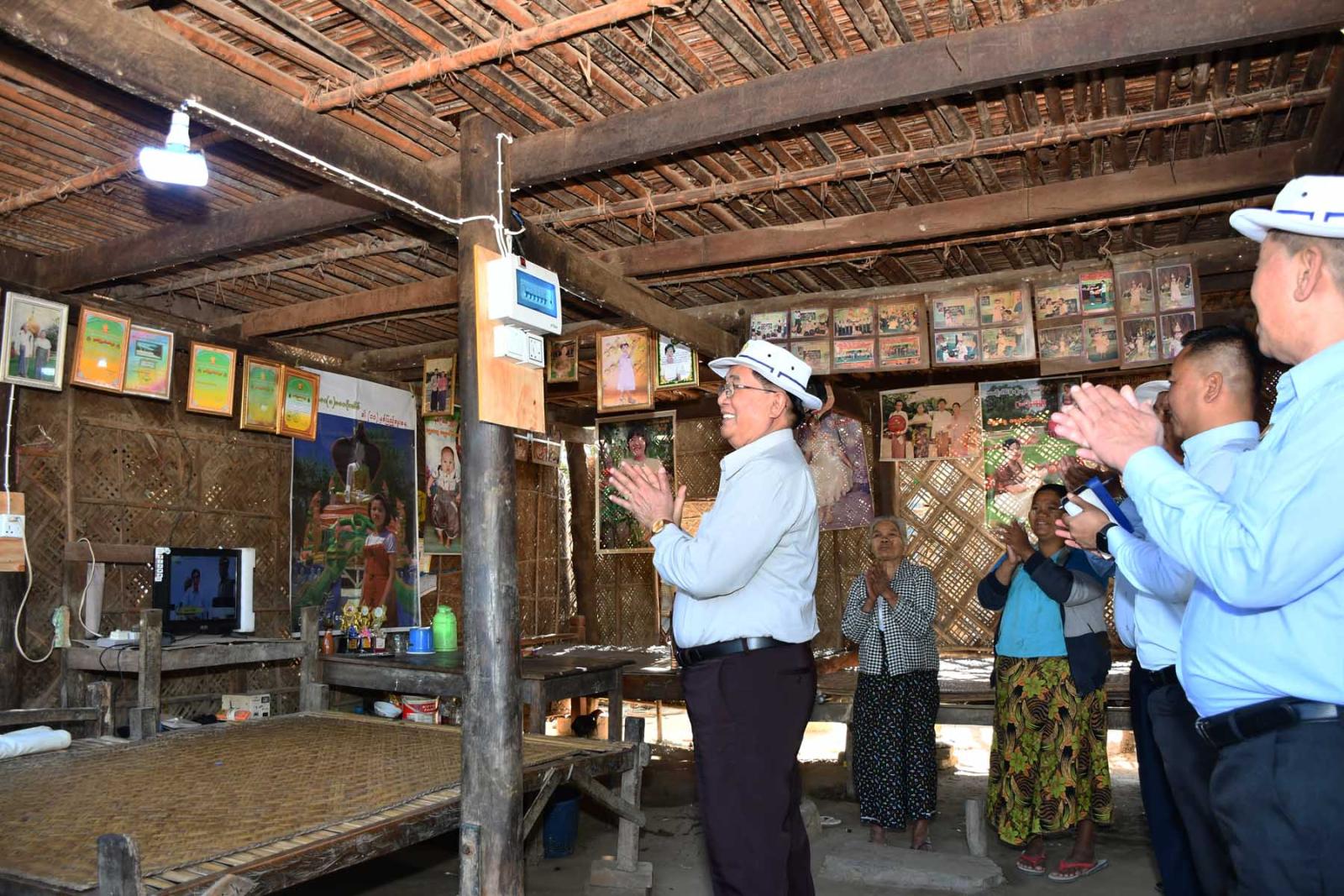 ရှေးဦးစွာ အခမ်းအနားတွင် ညောင်ကိုင်းကျေးရွာနှင့် သနပ်ပင်စုကျေးရွာရှိ လျှပ်စစ်မီးလင်းရေး ဖွင့်ပွဲမုခ်ဦးအား မကွေးတိုင်းဒေသကြီးဝန်ကြီးချုပ် ဦးတင့်လွင်နှင့်အတူ တိုင်းဒေသကြီးအစိုးရအဖွဲ့ဝင် ဝန်ကြီးများက ဖဲကြိုးဖြတ်ဖွင့်လှစ်ပေးပြီး အဆိုပါကျေးရွာနှစ်ရွာရှိ ထရန်စဖော်မာများအား စက်ခုလုပ်နှိပ်၍ မီးလင်းပေးခြင်းဆောင်ရွက်ကာ မီးလင်းရေးဖွင့်ပွဲတွင် ဖျော်ဖြေပေးခဲ့သည့် တီးဝိုင်းအဖွဲ့များနှင့် ကျောင်းသူလေးများကို ဂုဏ်ပြုဆုငွေများ ပေးအပ်ချီးမြှင့်ခဲ့ပြီးနောက် ကျေးရွာအတွင်း လျှပ်စစ်မီးရရှိမှုနှင့် စတင်သုံးစွဲနေမှုအခြေအနေများကို လှည့်လည်ကြည့်ရှုစစ်ဆေးသည်။