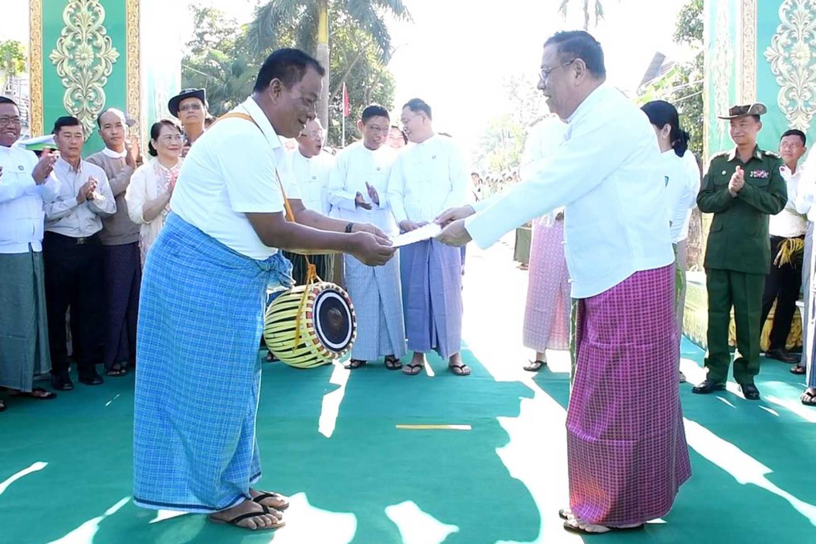 ဆက်လက်၍ ထိန်သစ်ရပ်ကွက်အုပ်ချုပ်ရေးမှူး ဦးကျော်လတ်က ကျေးဇူးတင်စကား ပြောကြားပြီး တိုင်းဒေသကြီးဝန်ကြီးချုပ်က လမ်းဖွင့်ပွဲတွင် တီးခတ်ဖျော်ဖြေပေးသော ဘင်ခရာအဖွဲ့နှင့် အိုးစည်ဒိုးပတ်အဖွဲ့အား ဂုဏ်ပြုဆုငွေ ချီးမြှင့်ပြီး မဟာရွှေဂုဏ်ထူးလမ်း ကွန်ကရစ်လမ်းသစ်အား လမ်းတစ်လျှောက် လိုက်လံကြည့်ရှုသည်။
