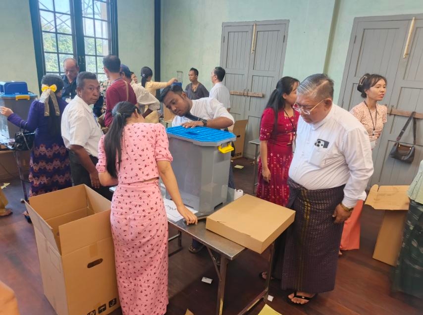ရန်ကုန်တိုင်းဒေသကြီး၊ ကျောက်တံတားခရိုင်၊ ကျောက်တံတားမြို့နယ်တွင် ၂၀၂၅ ခုနှစ်၊ ဒီဇင်ဘာ (၂၈) ရက်နေ့တွင် ကျင်းပမည့် ပါတီစုံဒီမိုကရေစီအထွေထွေရွေးကောက်ပွဲကို ကျင်းပသွားမည်ဖြစ်ရာ ရွေးကောက်ပွဲအောင်မြင်စွာ ကျင်းပနိုင်ရေးအတွက် မဲရုံများတွင် အသုံးပြုမည့် မြန်မာအီလက်ထရောနစ်မဲပေးစက် (MEVM) များ တပ်ဆင်ပုံအဆင့်ဆင့် သရုပ်ပြသခြင်းနှင့် လက်တွေ့တပ်ဆင်ဆောင်ရွက်ခြင်းကို ဒီဇင်ဘာ ၁၄ ရက်နေ့ နံနက်ပိုင်းက ဆူးလေဘုရားလမ်းရှိ ဟိုတယ်နှင့် ခရီးသွားလာရေးအဆောက်အဦ၌ ဆက်လက်ဆောင်ရွက်လျက်ရှိသည်။
