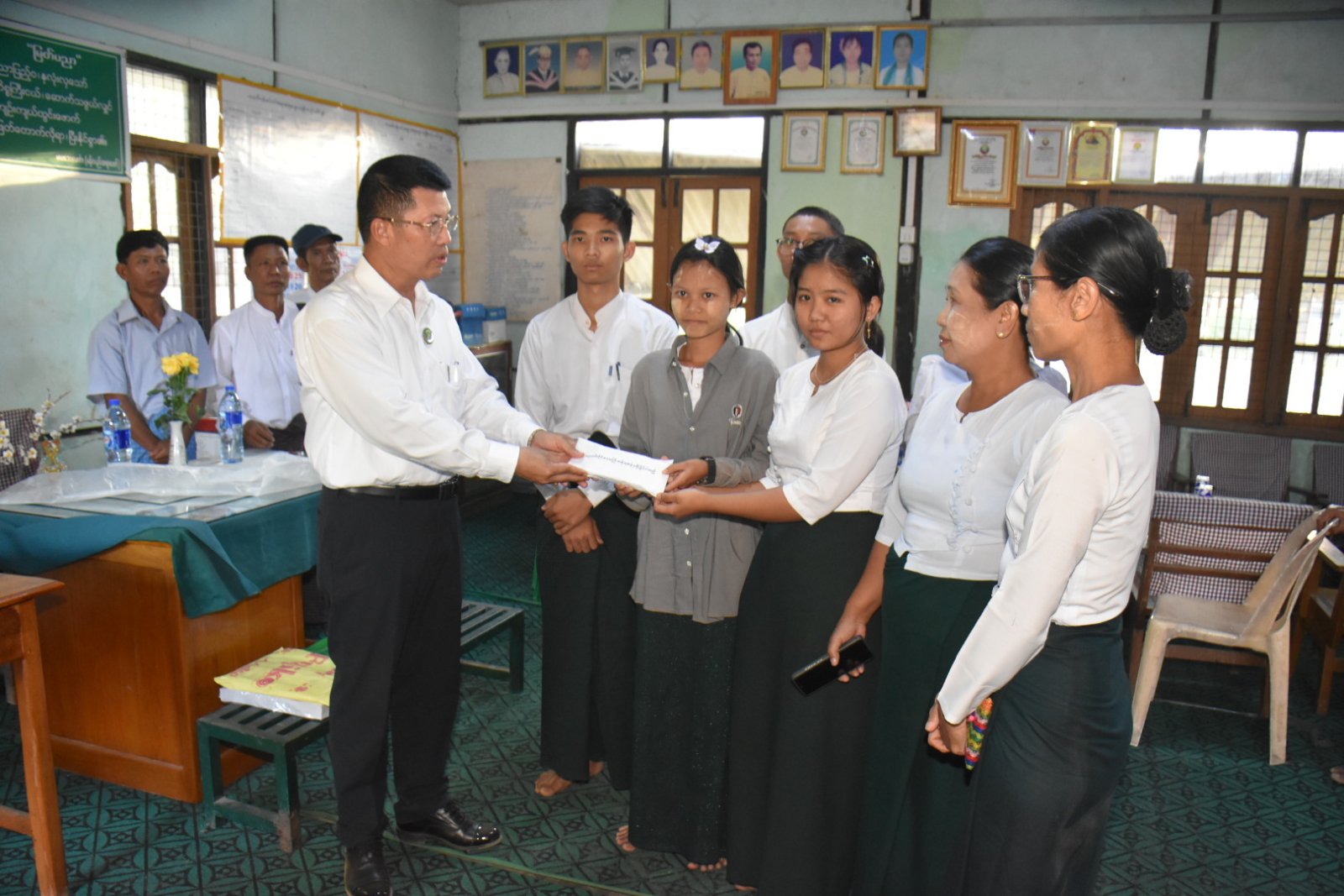 ဦးစွာတိုင်းဒေသကြီးဝန်ကြီးချုပ်သည် ဒေသခံပြည်သူများ၊ ဆရာ၊ ဆရာမများနှင့်တွေ့ဆုံခဲ့ရာ ပညာရေး၊ ကျန်းမာရေး၊ လမ်းပန်း ဆက်သွယ်ရေး၊ လျှပ်စစ်မီးရရှိရေးကိစ္စရပ်များ တင်ပြမှုများအပေါ် တိုင်းဒေသကြီးဝန်ကြီးချုပ်က ဘဏ္ဍာနှစ်အလိုက် လျာထားဆောင်ရွက်ပေးမည့်အခြေအနေများနှင့် တက္ကသိုလ်ဝင်စာမေးပွဲအောင်ချက်မြင့်မားရေးကိစ္စရပ်များအား ပြန်လည်ဆွေးနွေးခဲ့ပြီး ဆရာ၊ ဆရာများနှင့် ကျောင်းသား၊ ကျောင်းသူများကို ချီးမြှင့်ငွေများပေးအပ်ခဲ့သည်။