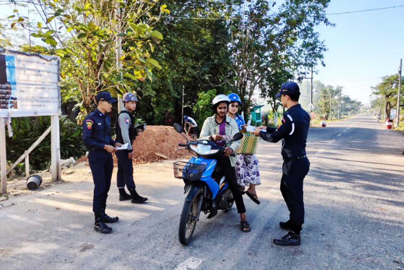 အသိပညာပေးဆောင်ရွက်ရာတွင် မြို့နယ်အထွေထွေအုပ်ချုပ်ရေးဦးစီးဌာနမှ ဒုတိယမြို့နယ်အုပ်ချုပ်ရေးမှူး၊ မြို့နယ်ရဲတပ်ဖွဲ့ဝင်များ၊ မြို့နယ်မီးသတ်ဦးစီးမှူးနှင့်ဌာနဆိုင်ရာများ၊ သန္ဓေ၊ အရန်မီးသတ်တပ်ဖွဲ့ဝင်များ၊ ရပ်ကွက်အုပ်ချုပ်ရေးအဖွဲ့ဝင်များက မြို့အဝင်အထွက်ဂိတ်နှင့် မြို့ပေါ်ရပ်ကွက်များတွင် မော်တော်ဆိုင်ကယ်၊ မော်တော် ကား စီးနင်းမောင်နှင်သူများ၊ ခရီးသွားလာနေသူများ၊ ဒေသခံပြည်သူများအား မီးသတ်ဦးစီးဌာနမှ ထုတ်ဝေထားသည့် မီးဘေးလုံခြုံရေးပညာပေးလက်ကမ်းစာစောင်များ အသိပညာပေး ဆောင်ရွက်လျက်ရှိကြောင်း သိရသည်။