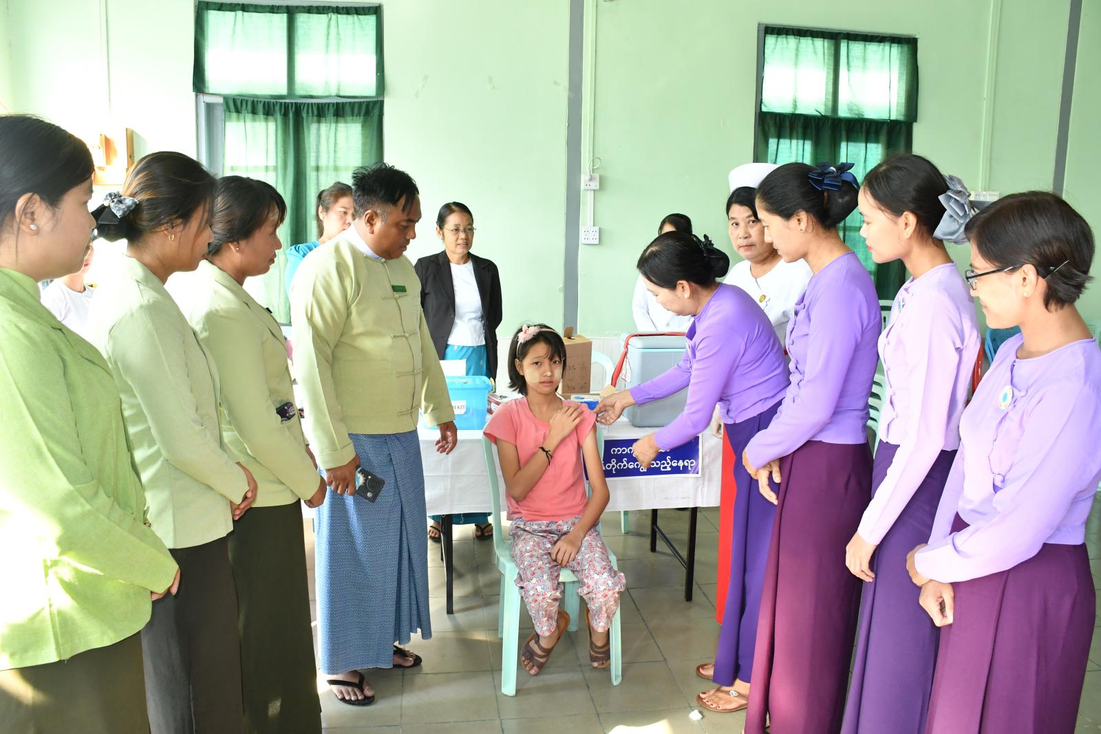 ဆက်လက်၍ မြို့နယ်အုပ်ချုပ်ရေးမှူးနှင့်အတူ တက်ရောက်လာကြသည့် ဌာနဆိုင်ရာများ၊ မြို့နယ်အမျိုးသမီးရေးရာအဖွဲ့၊ မိခင်နှင့်ကလေးစောက်ရှောက်ရေးအဖွဲ့၊ မြို့နယ်ကြက်ခြေနီအသင်း၊ မီးသတ်တပ်ဖွဲ့ဝင်များက ကျန်းမာရေးဝန်ထမ်းများက သားအိမ်ခေါင်း ကင်ဆာရောဂါကာကွယ်ဆေး (HPV) ထိုးနှံပေးမှုများကို ကြည့်ရှုအားပေးခဲ့ကြောင်း သိရသည်။
