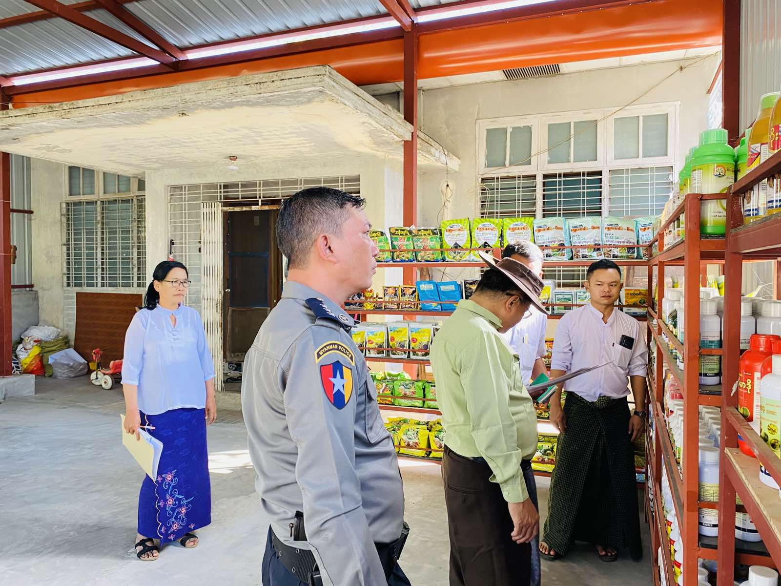 ထိုသို့ ကွင်းဆင်းစစ်ဆေးရာတွင် မြို့နယ်စီမံခန့်ခွဲရေးနှင့် အုပ်ချုပ်ရေးကော်မတီဥက္ကဋ္ဌ ဦးယဥ်ထွေး၊ စိုက်ပျိုးရေးဦးစီးဌာန မြို့နယ်ဦးစီးမှူး ဦးအောင်ဝင်းနှင့် ကော်မတီဝင်များက မြို့နယ်အတွင်းရှိ စိုက်ပျိုးရေးပစ္စည်းအရောင်းဆိုင်များတွင် စပါး၊ မတ်ပဲနှင့် ပဲတီစိမ်း စိုက်ခင်းများတွင် အသုံးမပြုရန်တားမြစ်ထားသော တရားမဝင် ပိုးသတ်ဆေး (၂) မျိုးဖြစ်သည့် Thiamethoxam နှင့် Clothianidin တို့အား ဖြန့်ဖြူးခြင်း၊ ဆိုင်တင်ရောင်းချခြင်းများ လုံးဝမပြုလုပ်စေရန်၊ လိုက်နာခြင်း မရှိသည်ကို စစ်ဆေးတွေ့ရှိပါက ပိုးသတ်ဆေးဥပဒေအရ အရေးယူဆောင်ရွက်သွားမည်ဖြစ်ကြောင်း၊ စားသုံးသူပြည်သူများ ဘေးကင်းလုံခြုံစေရေးနှင့် ပြည်ပသို့တင်ပို့နေသော စိုက်ပျိုးရေးထုတ်ကုန်များ ပိုးသတ်ဆေး ဓာတ်ကြွင်းကင်းစင်စေရေးအတွက် ရည်ရွယ်၍ ဆောင်ရွက်ရခြင်းဖြစ်ကြောင်း အသိပေးဟောပြောခဲ့ကြောင်း သိရှိရသည်။