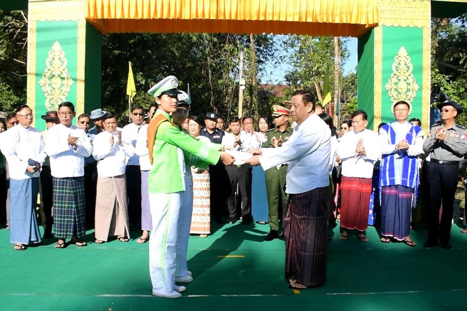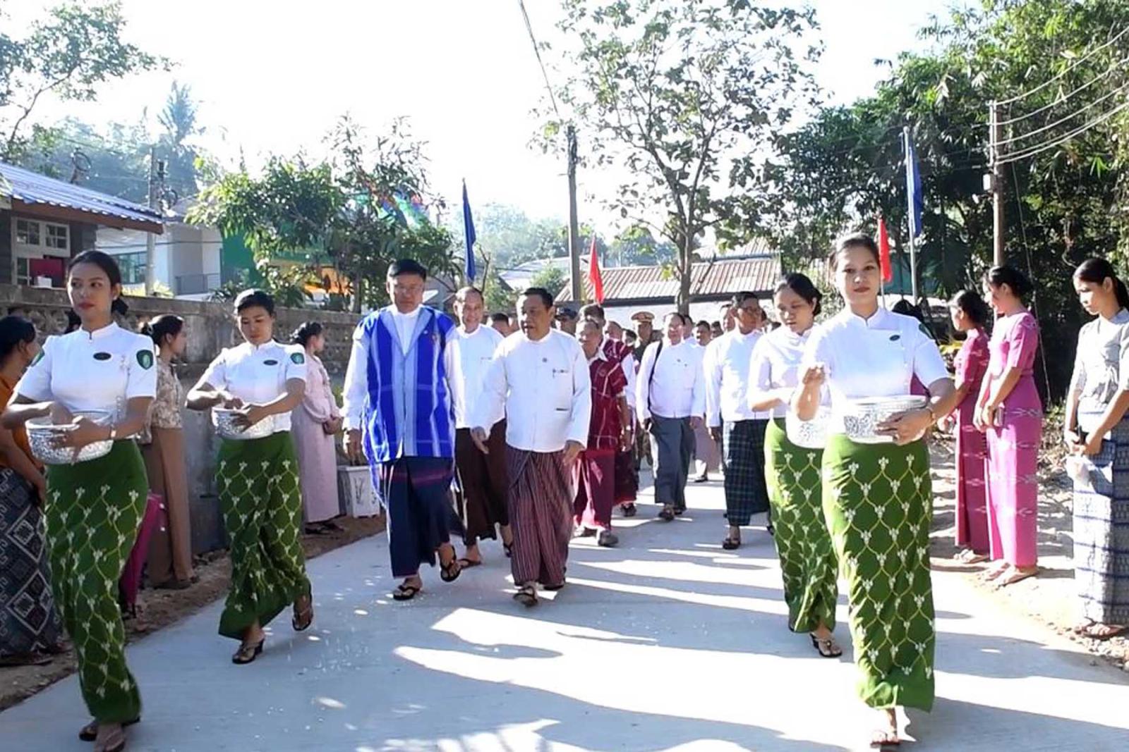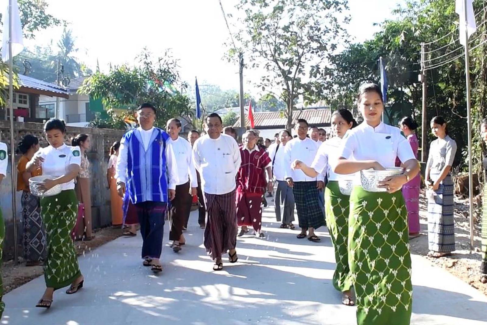 ဆက်လက်၍ ရပ်ကွက်နေပြည်သူဦးစန်းဝေက ကျေးဇူးတင်စကား ပြောကြားပြီး တိုင်းဒေသကြီးဝန်ကြီးချုပ်က လမ်းဖွင့်ပွဲတွင် ဖျော်ဖြေတီးခတ်ဖျော်ဖြေပေးသော ဘင်ခရာအဖွဲ့နှင့် တိုင်းရင်းသားအကအဖွဲ့များအား ဂုဏ်ပြုဆုငွေ ချီးမြှင့်ပြီး မျှော်အင်းလမ်းသွယ် ကွန်ကရစ်လမ်းသစ်အား လမ်းတစ်လျှောက် လိုက်လံကြည့်ရှုသည်။
