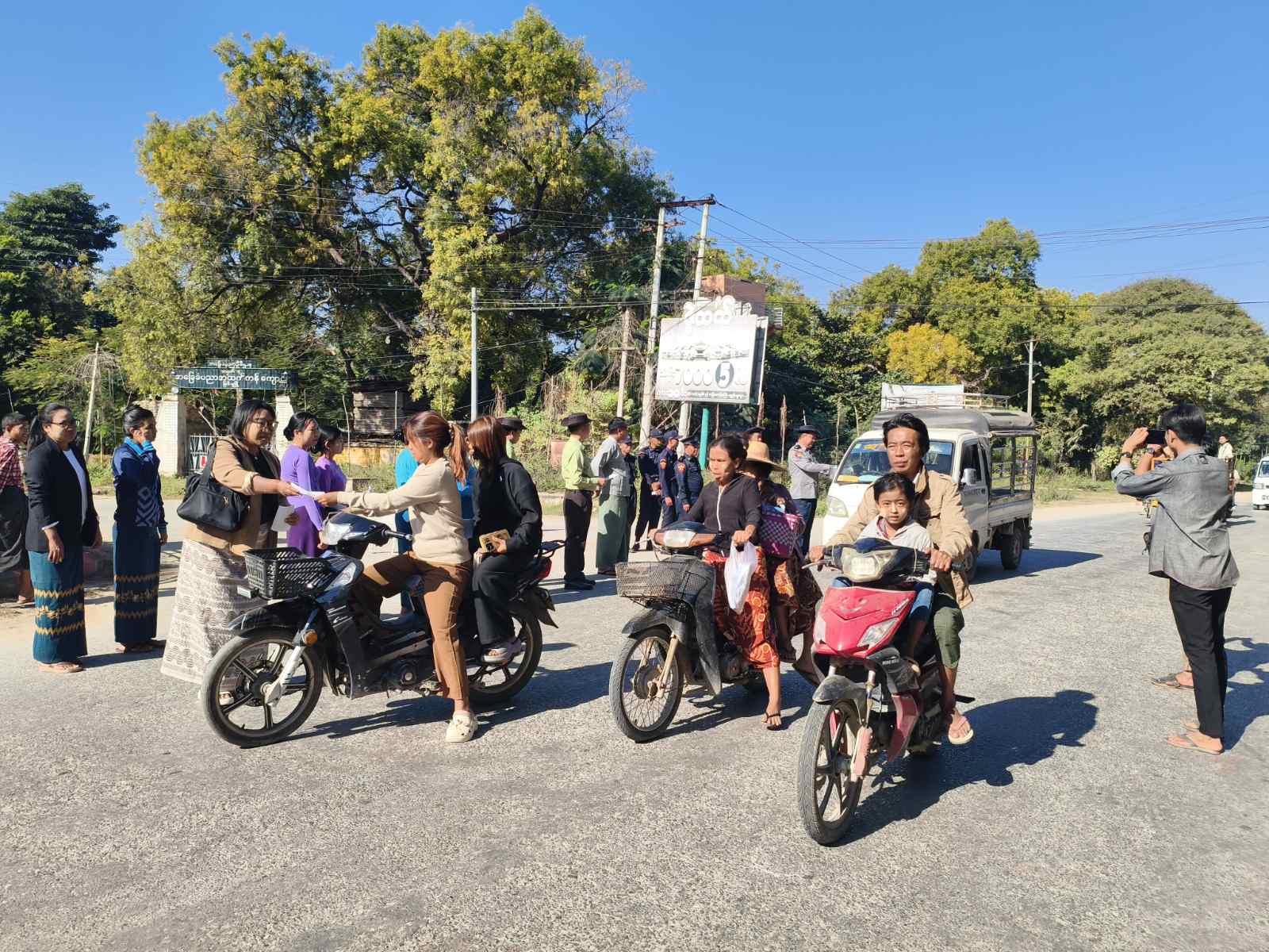ထိုသို့ဆောင်ရွက်ရာတွင် မြို့နယ်စီမံခန့်ခွဲရေးနှင့် အုပ်ချုပ်ရေးကော်မတီဥက္ကဋ္ဌနှင့် ဌာနဆိုင်ရာများက မြို့နယ်မိခင်နှင့်ကလေးစောင့်ရှောက်မှုကြီးကြပ်ရေးအဖွဲ့နှင့် အမျိုးသမီးရေးရာအဖွဲ့ဝင်များက “ဒို့အတူတူမဲပေးကြမယ်” လက်ကမ်းစာစောင်များဖြန့်ဝေပြီး မော်တော်ယာဉ်များအား စတစ်ကာများ ကပ်ပေးခဲ့ကြောင်း သိရသည်။