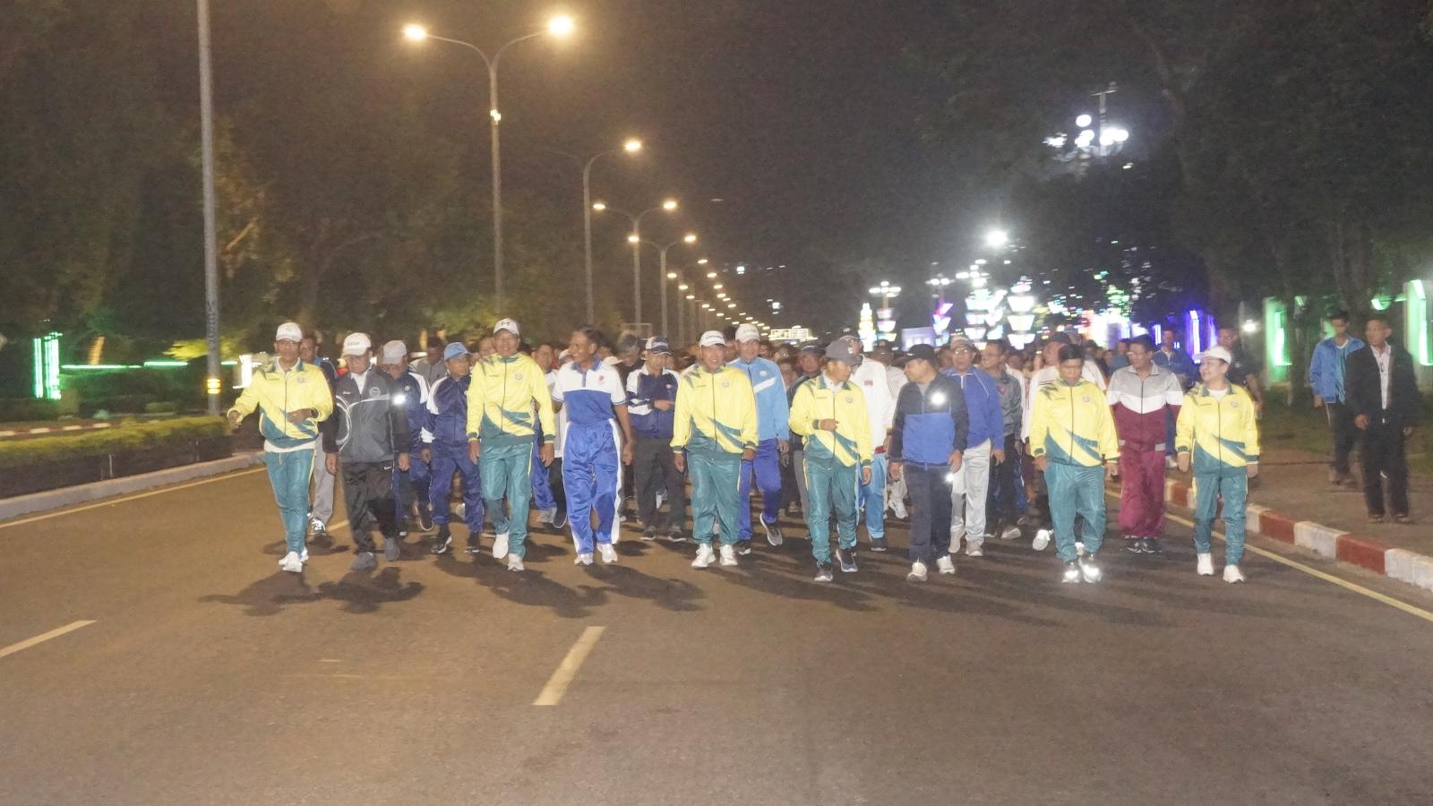 လူထုစုပေါင်းလမ်းလျှောက်ပွဲကို ရန်ကုန်တိုင်းဒေသကြီးအစိုးရ အဖွဲ့ဝန်ကြီးချုပ် ဦးစိုးသိန်းက သေနတ်ပစ်ဖောက်၍ ဖွင့်လှစ်ပေးခဲ့ပြီး လမ်းလျှောက်ပွဲသို့ ရောက်ရှိနေကြသူများနှင့်အတူ ပြည်လမ်း၊ အလုံလမ်း၊ ဦးဝိစာရလမ်းမှ ပြည်သူ့ရင်ပြင်သို့စုပေါင်း လမ်းလျှောက်ခဲ့ကြသည်။ ယင်းနောက် ပြည်သူ့ရင်ပြင်၌ ကိုယ်လက်ကြံ့ခိုင်ရေး လေ့ကျင့်ခန်းကို စုပေါင်းဆောင်ရွက်ခဲ့ကြကြောင်း သိရှိရသည်။