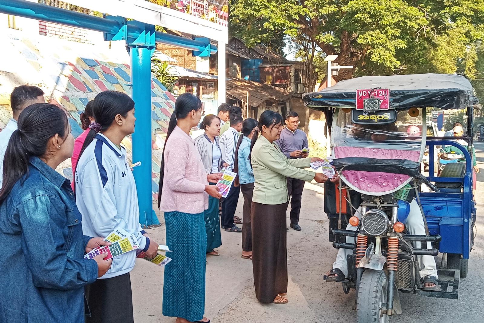 ရေနံချောင်းမြို့၌ “ဒို့အတူတူမဲပေးကြမယ်” ရွေးကောက်ပွဲလှုံ့ဆော်ရေးအသိပညာပေးလက်ကမ်းစာစောင်များဖြန့်ဝေ
