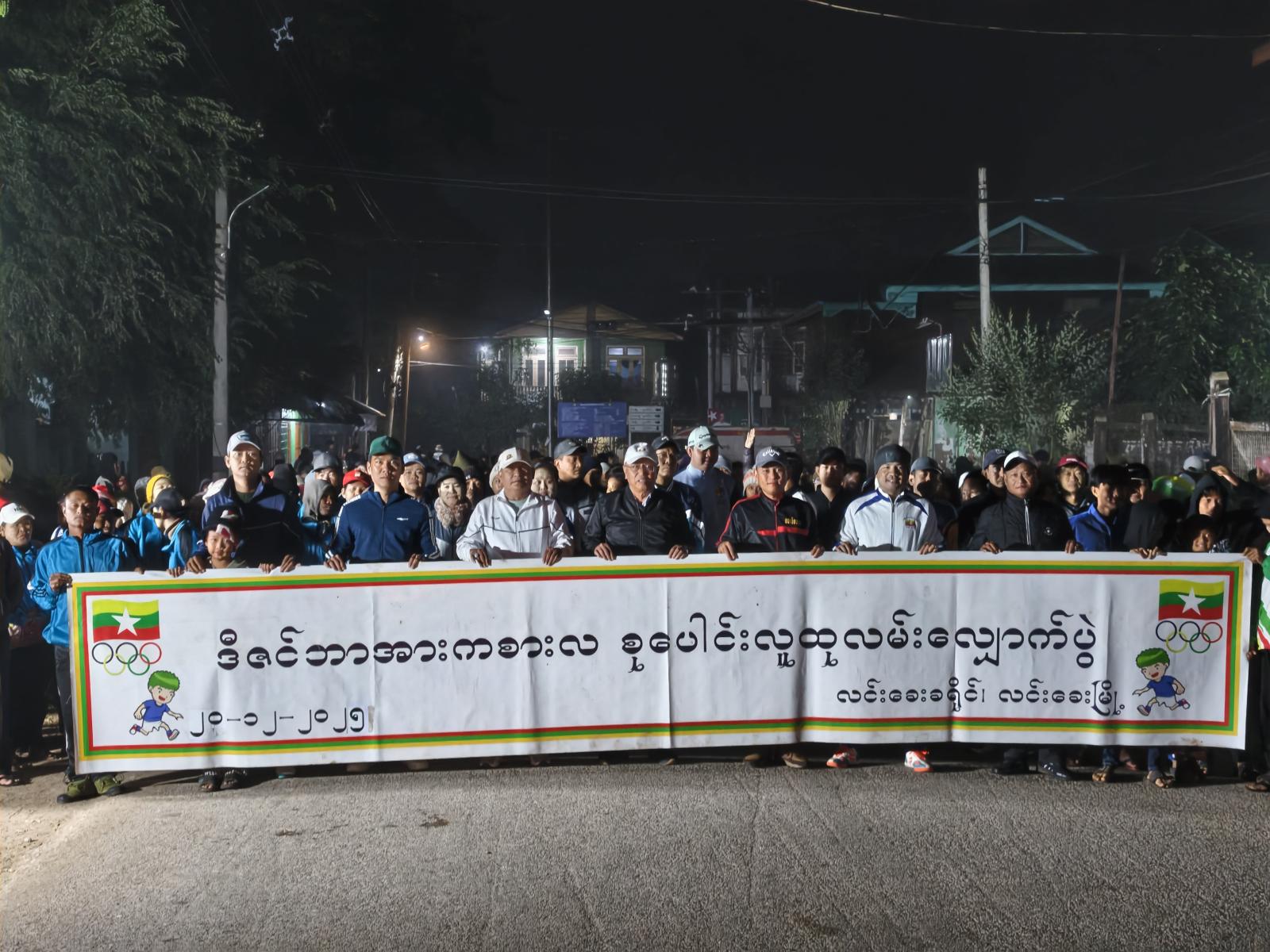 အဆိုပါစုပေါင်းလမ်းလျှောက်ပွဲကို ယနေ့နံနက် (၅)နာရီက (လင်းခေး-မို့းနဲ-နမ့်စန်)သွားလမ်း၊ မြို့မလမ်းဆုံနေရာမှ စုရပ်ပြု၍ စတင်ကျင်းပခဲ့ပါသည်။