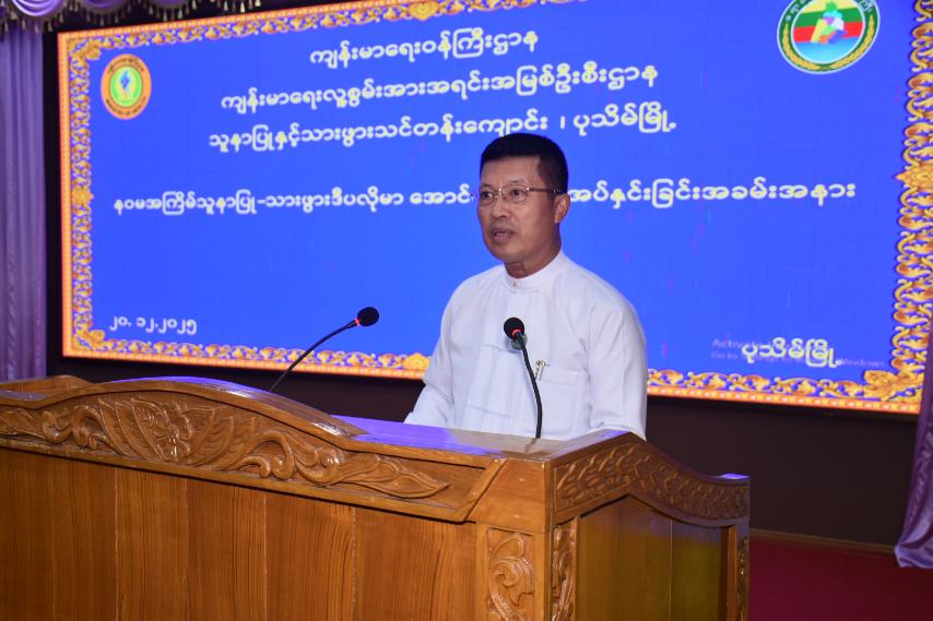 ဦးစွာ တိုင်းဒေသကြီးဝန်ကြီးချုပ်က“ တိုင်းဒေသကြီးအတွင်းရှိ သူနာပြုသင်တန်းကျောင်း (၃)ကျောင်းတွင် သူနာပြုအတတ်ပညာများ လေ့ကျင့်ပျိုးထောင်ပေးလျက်ရှိပြီး သင်တန်းဆင်း သူနာပြု ဆရာ/ ဆရာမများသည် ယခုအချိန်တွင် နေရာဒေသသီးသီးတွင် တာဝန်ကျေပွန်စွာဖြင့် ပြည်သူ့ အကျိုးကိုထမ်းဆောင်နေကြပြီဖြစ်ပါကြောင်း၊ ကျန်းမာရေးဝန်ထမ်းများအနေဖြင့် ကိုဗစ်-၁၉ ရောဂါဖြစ်ပွားနေစဉ်ကာလအတွင်း မိမိအသက်ကိုပဓာနမထားဘဲ ကျန်းမာရေးလုပ်ငန်းများကို ရှေ့တန်းကျကျ ဆောင်ရွက်ခဲ့သည်ကို အသိအမှတ်ပြုဂုဏ်ပြုပါကြောင်း၊ မိမိတို့ကျရာဒေသများ၌ တာဝန်ထမ်းဆောင်ကြသည့်အခါ စေတနာ၊ ဝါသနာ၊ အနစ်နာများအား အရင်းခံ၍ ကျန်းမာရေးလုပ်ငန်းအား ထဲထဲဝင်ဝင်ဖြင့် လူနာများအား မိမိတို့ တတ်မြောက်ထားသည့် ကျန်းမာရေးအတတ်ပညာများဖြင့် အစွမ်းကုန်ပြုစုရန်လိုပါကြောင်း၊ ကျန်းမာရေးကဏ္ဍဖွံ့ဖြိုးတိုးတက်ရေး လုပ်ငန်းများအကောင်အထည်ဖော်ဆောင်ရွက်ရာတွင် လူတိုင်း သက်တမ်းစေ့ အသက်ရှည်စွာနေနိုင်ရေးနှင့် လူတိုင်းရောဂါဘယကင်းရှင်းရေးအတွက် မိမိတို့တာဝန်ကျသည့် နေရာဒေသတွင်လည်း ပြည်သူများအပေါ် စေတနာအရင်းခံထားပြီး မိမိတို့၏ သွေးသားရင်းများသဖွယ် ကိုယ်ချင်းစာစိတ် အပြည့်အဝဖြင့် နွေးထွေးစွာပြုစု စောင့်ရှောက်ပေးကြရန်လည်း မှာကြားလိုပါကြောင်း၊ သာမန်လူများ၊ သာမန်စိတ်ဓာတ်များနှင့် မလုပ်နိုင်သော သူနာပြု-သားဖွား အလုပ်ကိုဂုဏ်ယူစွာ၊ကျေနပ်စွာဖြင့် အကောင်းဆုံးလုပ်ဆောင်သွားကြရန်နှင့် ကောင်းမွန်သည့် အစဉ်အလာများကို ဆက်လက်ထိန်းသိမ်းသွားကြပါလို့ အထူး တိုက်တွန်းလိုပါကြောင်း၊ သူနာပြုများရဲ့ အဓိကတာဝန်ဟာ ကျန်းမာရေး ပြုစုစောင့်ရှောက်မှုပေးခြင်းဖြစ်တာကြောင့် မည်သည့်အခြေအနေမျိုးမှာမဆို လူနာများကို ပစ်ပယ်ထားခြင်းမပြုဘဲ ပြုစုစောင့်ရှောက်ကြဖို့ အထူးမှာကြားလိုပါကြောင်း၊ သူနာပြု-သားဖွားများဟာ နိုင်ငံတော်ရဲ့ လိုအပ်ချက်အတွက် တစ်ထောင့်တစ်နေရာမှာ ဖြည့်တင်းလုပ်ကိုင်ရင်း မိမိတို့ကိုယ်ကို မိသားစု၊ ပတ်ဝန်းကျင်နဲ့ပြည်သူလူထု တစ်ရပ်လုံးအတွက် အလုပ်အကျွေး ပြုပြီး ကျန်းမာရေးဝန်ဆောင်မှု လုပ်ငန်းများကို ဦးဆောင် ကြိုးပမ်းဆောင်ရွက်သွားကြရန်လိုပါကြောင်း” အမှာစကားပြောကြားခဲ့ပြီး တိုင်းဒေသကြီးဝန်ကြီးချုပ်နှင့် ဧည့်သည်တော်များသည် စုပေါင်းမှတ်တမ်းတင် ဓာတ်ပုံရိုက်ကူးခဲ့ကြပြီး တာဝန်ရှိသူများက ပုသိမ်မြို့သူနာပြုနှင့်သားဖွားသင်တန်းကျောင်း၏ နဝမအကြိမ်သူနာပြု-သားဖွားဒီပလိုမာ အောင်လက်မှတ်အပ်နှင်းခြင်းအခမ်းအနားတွင်သင်တန်းသားသင်တန်းသူ (၈၉) ဦးတို့အားသူနာပြု-သားဖွားဒီပလိုမာ အောင်လက်မှတ်များ အပ်နှင်းပေးခဲ့ကြသည်။