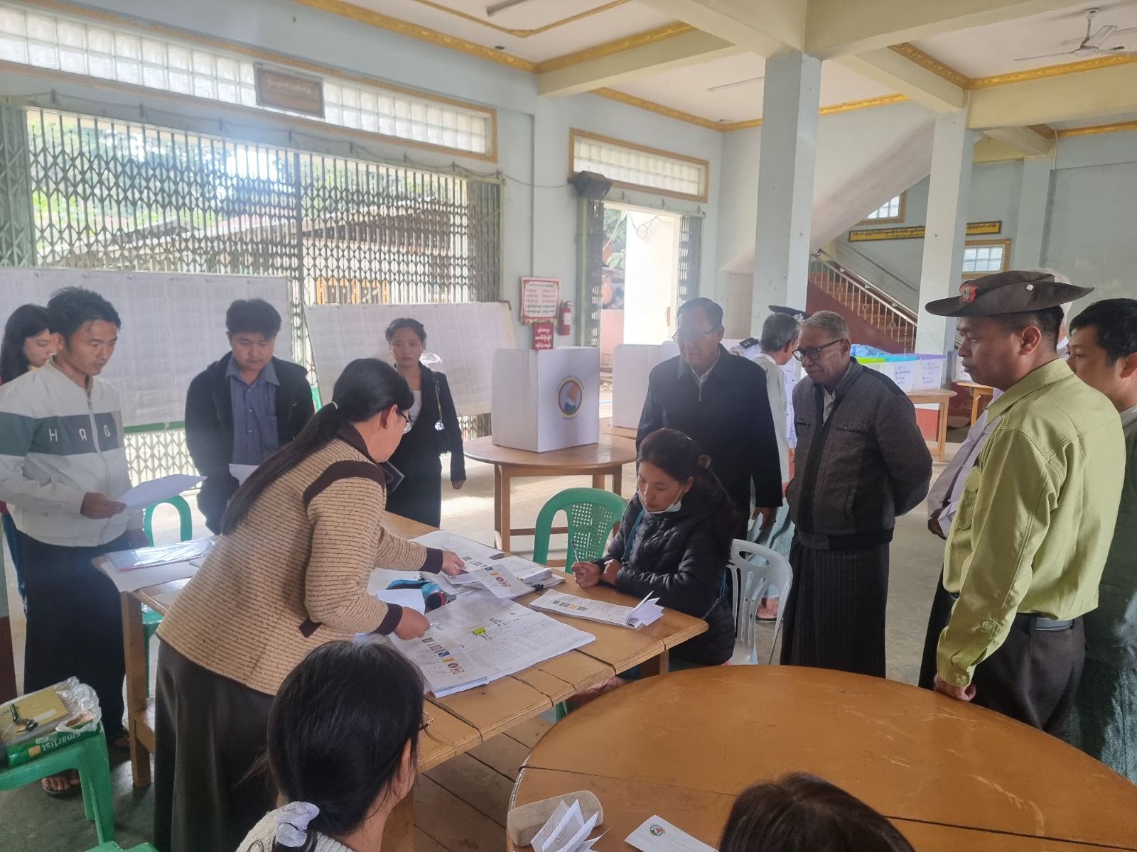 ပြည်ထောင်စုရွေးကောက်ပွဲကော်မရှင်အဖွဲ့ဝင် ရှမ်းပြည်နယ်(မြောက်ပိုင်း) တာဝန်ခံ ဦးမြင့်ဦးသည် ကျောက်မဲခရိုင် ရွေးကောက်ပွဲကော်မရှင်အဖွဲ့ခွဲ ဥက္ကဋ္ဌ ဦးဘိုးရီနှင့် အဖွဲ့ဝင်များလိုက်ပါ၍ ယနေ့နံနက် ၉ နာရီအချိန်တွင် ကျောက်မဲခရိုင်၊ နောင်ချိုမြို့၊ မြို့နယ်စည်ပင်ခန်းမ၌ နောင်ချိုမြို့နယ် စီမံခန့်ခွဲရေးနှင့်အုပ်ချုပ်ရေးကော်မတီအဖွဲ့ဝင်များ၊ မြို့နယ်ရွေးကောက်ပွဲကော်မရှင်အဖွဲ့ခွဲ ဥက္ကဋ္ဌ ဦးအောင်ကျော်နှင့် အဖွဲ့ဝင်များ၊ ရပ်ကွက်/ကျေးရွာအုပ်စု ရွေးကောက်ပွဲ ကော်မရှင်အဖွဲ့ခွဲဥက္ကဋ္ဌနှင့် အဖွဲ့ဝင်များ၊ မြို့နယ်အဆင့်ဌာနဆိုင်ရာတာဝန်ရှိသူများ၊ နောင်ချိုမြို့နယ် ရွေးကောက်ပွဲကော်မရှင်အဖွဲ့ခွဲ ရုံးဝန်ထမ်းများ၊ မဲရုံမှူး၊ ဒုမဲရုံမှူးနှင့် မဲရုံအဖွဲ့ဝင်များပါဝင်သည့် ၂၀၂၅ ခုနှစ် ပါတီစုံဒီမိုကရေစီ အထွေထွေးရွေးကောက်ပွဲ အောင်မြင်စွာကျင်းပနိုင်ရေး လုပ်ငန်းညှိနှိုင်းအစည်းအဝေးသို့ တက်ရောက်၍ ရွေးကောက်ပွဲဆိုင်ရာ လုပ်ငန်းများအား ရှင်းလင်းဆွေးနွေးခဲ့သည်။