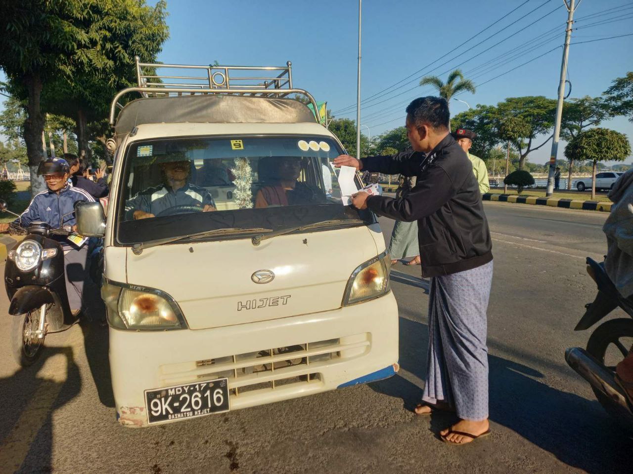 ရွေးကောက်ပွဲဆိုင်ရာ အသိပညာပေးလက်ကမ်းစာစောင်များဖြန့်ဝေခြင်း၊ မော်တော်ယာဉ်များအား စတစ်ကာများကပ်ခြင်းတို့ကို စစ်ကိုင်းတိုင်းဒေသကြီးအစိုးရ အဖွဲ့၏ လမ်းညွန်မှုနှင့်အတူ ပြန်ကြားရေးနှင့်ပြည်သူ့ဆက်ဆံရေးဦးစီးဌာနမှ အရာထမ်း၊ အမှုထမ်းများ၊ ခရိုင်/ မြို့နယ်ရွေးကောက်ပွဲကော်မရှင်အဖွဲ့ခွဲဥက္ကဋ္ဌနှင့်အဖွဲ့ဝင်များ ဖိတ်ကြားထားသူများသည် ဗိုလ်ချုပ် လမ်းပေါ်တွင်သွားလာနေကြသော မော်တော်ယာဉ်များအား စတစ်ကာများကပ်ခြင်း၊ ခရီးသွားပြည်သူများအား လက်ကမ်းစာစောင်ဖြန့်ဝေခြင်းတို့ကို ဆောင်ရွက်ခဲ့ကြကြောင်း သိရှိရသည်။