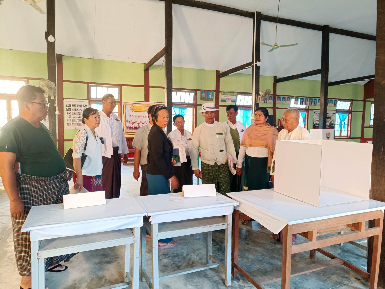 ဧရာဝတီတိုင်းဒေသကြီး၊ မြန်အောင်ခရိုင်၊ ကြံခင်းမြို့ပေါ်ရပ်ကွက်များတွင် ၂၀၂၅ ခုနှစ်၊ ဒီဇင်ဘာလ ၂၈ ရက်နေ့တွင်ကျင်းပမည့် ပါတီစုံဒီမိုကရေစီအထွေထွေရွေးကောက်ပွဲကျင်းပမည့် မဲရုံ များပြင်ဆင်ဆောင်ရွက်ထားရှိမှုများကို ယမန်နေ့ညနေ ၃ နာရီခွဲအချိန်က တိုင်းဒေသကြီး ရွေးကောက်ပွဲကော်မရှင်တာဝန်ခံနှင့် မြို့နယ်ရွေးကောက်ပွဲကော်မရှင်ဥက္ကဋ္ဌနှင့်အဖွဲ့ဝင်များ ကွင်းဆင်းကြည့်ရှုခဲ့ကြသည်။
