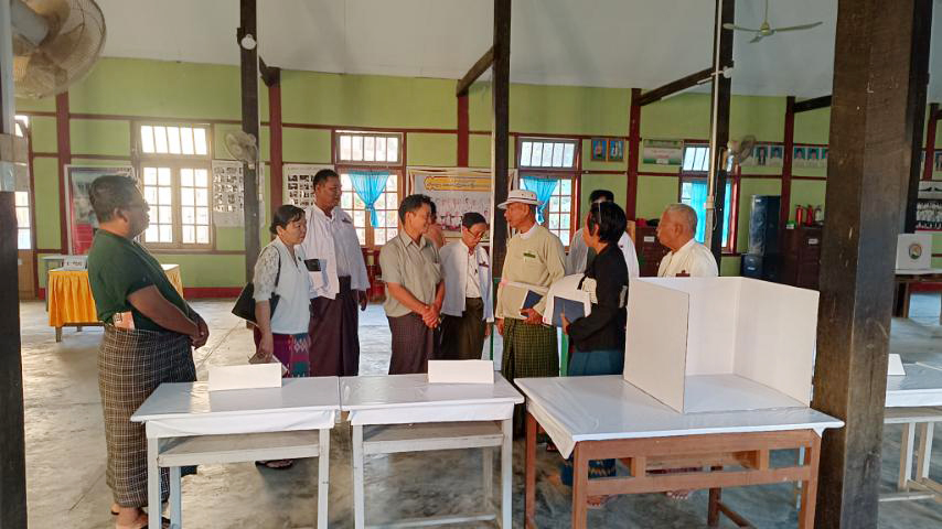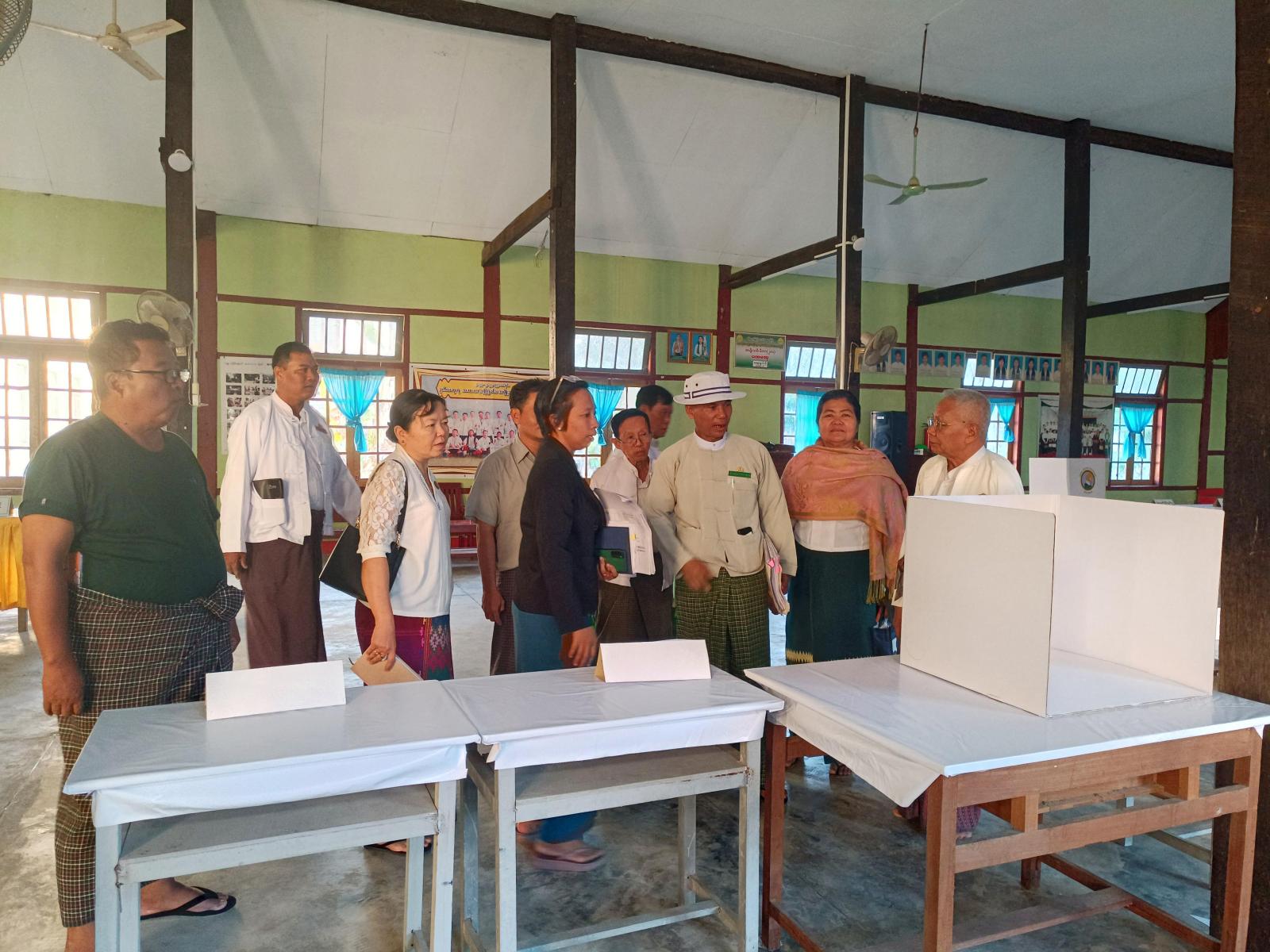 ထို့သို့ ကွင်းဆင်းကြည့်ရှုရာတွင် တိုင်းဒေသကြီးရွေးကောက်ပွဲကော်မရှင်တာဝန်ခံ ဦးသန်းထွန်း၊ မြို့နယ်ရွေးကောက်ပွဲကော်မရှင်ဥက္ကဋ္ဌ လှိုင်ဝင်းနှင့်အဖွဲ့ဝင်များ၊ မြို့ရွေးကောက်ပွဲကော်မရှင်(ခွဲ) အရာရှိ ဒေါ်ဝင်းဝင်းမြင့်၊ မြို့နယ်ရွေးကောက်ပွဲကောက်မရှင်အဖွဲ့ဝင် ဌာနဆိုင်ရာများက ရွှေတောင်စုရပ်ကွက်၊ ရွာသစ်ရပ်ကွက်၊ မြို့မရပ်ကွက်တို့ရှိ မဲရုံများ စနစ်တကျ နေရာချထားမှု ရှိ/မရှိ၊ ဆန္ဒမဲ လာရောက်မဲပေးမည့် ပြည်သူများ အဆင်ပြေစိတ်ချလုံခြုံစွာ မဲပေးနိုင်ရေး၊ အဝင်လမ်း၊ အထွက်လမ်း မြင်သာအောင်ဆောင်ရွက်ထားရှိရေးတို့ကို တိုင်းဒေသကြီးရွေးကောက်ပွဲကော်မရှင်တာဝန်ခံက မဲရုံမှူး၊ ဒုမဲရုံမှူးတို့အား လိုအပ်သည်များကို ပေါင်းစပ်ဆောင်ရွက်သွားကြရန် ညှိနှိုင်းပေးခဲ့ကြကြောင်း သိရသည်။