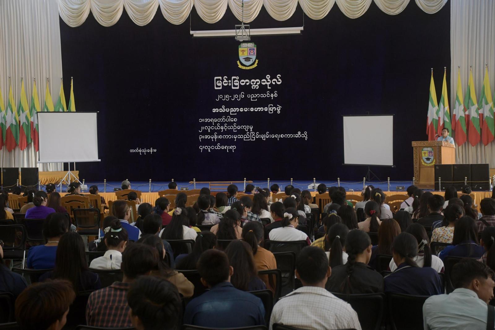 မန္တလေးတိုင်းဒေသကြီး၊ မြင်းခြံတက္ကသိုလ်၌ အသိပညာပေး ဟောပြောပွဲကို ဒီဇင်ဘာ ၂၄ ရက်က မြင်းခြံတက္ကသိုလ် ဘက်စုံသုံးခန်းမတွင် ပြုလုပ်ခဲ့သည်။