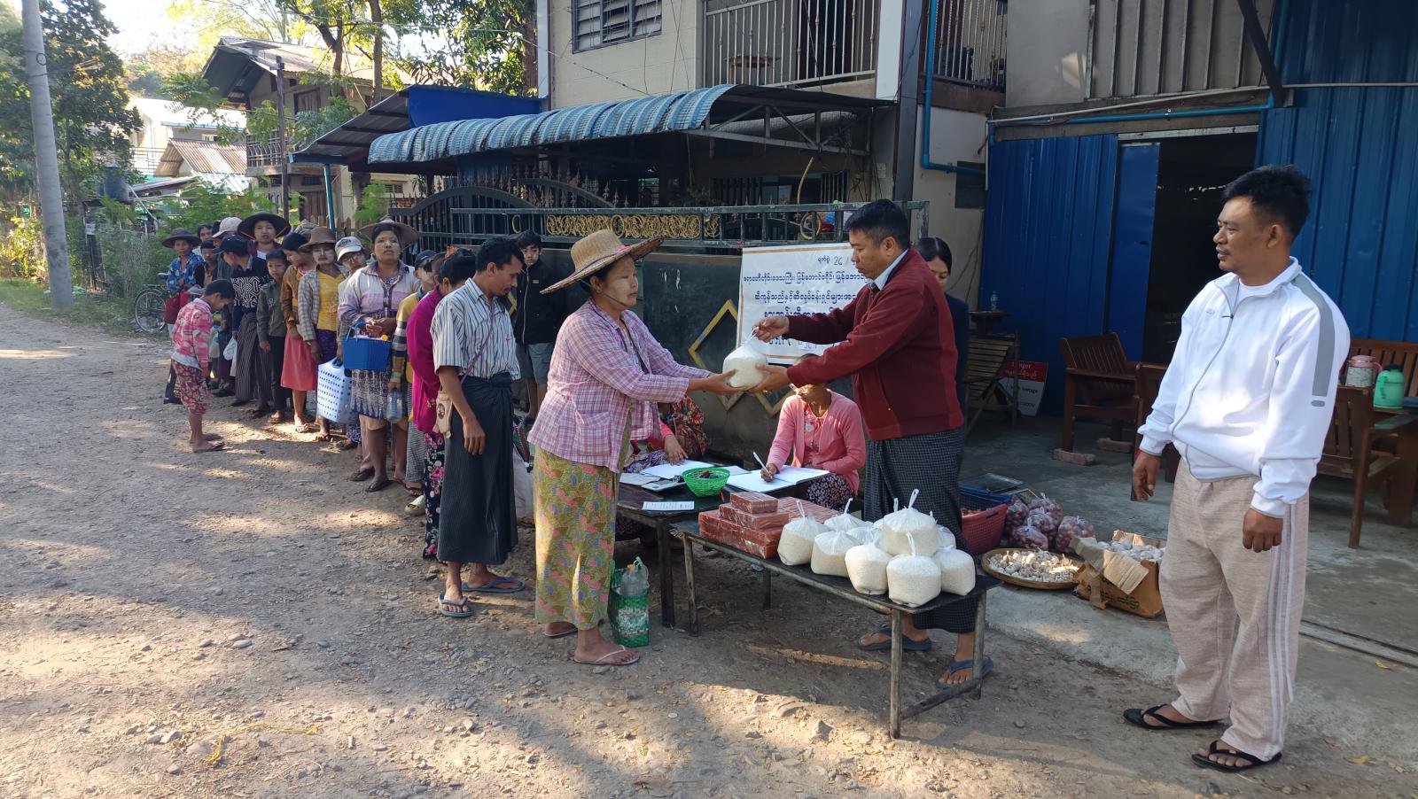 မြန်အောင်မြို့နယ် ဆီကုန်သည်နှင့် ဆီလုပ်ငန်းရှင်များအသင်းမှ စားအုန်းဆီတစ်ပိဿာ (၆၅၉၄) ကျပ်၊ ဆန်တစ်ပြည် (၂၀၀၀) ကျပ်နှုန်းဖြင့် ရောင်းချပေးမှုအား မြို့နယ်စီမံခန့်ခွဲရေးနှင့် အုပ်ချုပ်ရေးကော်မတီအဖွဲ့ဝင် ဦးမြင့်နိုင်၊ မြို့နယ်စားသုံးသူရေးရာဦးစီးဌာန ဝန်ထမ်းများ၊ ခရိုင်ဆီကုန်သည်နှင့် ဆီလုပ်ငန်းရှင်များ အသင်းဥက္ကဋ္ဌ ဦးမင်းဇော်ဦးနှင့် ဌာနဆိုင်ရာတာဝန်ရှိသူများနှင့် ရပ်မိရပ်ဖတို့က ကြည့်ရှုအားပေးကူညီဆောင်ရွက်ပေးခဲ့ကြသည်။
