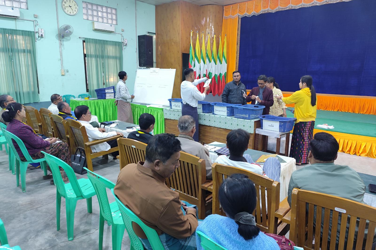 ပြည်တွင်းရှိ မဲစာရင်းပါရှိသည့် သက်ဆိုင်ရာ မြို့နယ်ပြင်ပရောက်ရှိသူများ ဆန္ဒပြုထားသည့် ကြိုတင်ဆန္ဒမဲလက်မှတ်များ ပါဝင်သည့် စာအိတ်များအား ပုံစံ (၁-၁)၊ ပုံစံ (၁-၂)၊ ပုံစံ (၁-၄)နှင့် ကြိုတင်ဆန္ဒမဲပေးသူများ လက်မှတ်ရေးထိုးထားသည့် ပုံစံ-၁၅ (က-၁)၊ ပုံစံ-၁၅ (ခ-၁) တို့ဖြင့် တိုက်ဆိုင်စစ်ဆေးကာ ကြိုတင်ဆန္ဒမဲလက်မှတ်များ ရေတွက်ခဲ့ကြသည်။