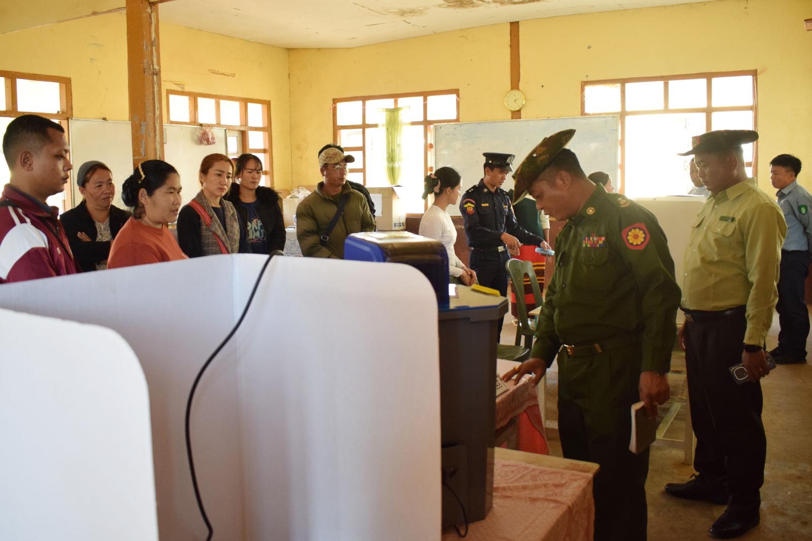 ရှမ်းပြည်နယ် (တောင်ပိုင်း)၊ ခိုလမ်မြို့၌ ၂၀၂၅ ခုနှစ် ဒီဇင်ဘာလ ၂၈ ရက်နေ့တွင် ပါတီစုံဒီမိုကရေစီ အထွေထွေရွေးကောက်ပွဲကျင်းပပြုလုပ်မည်ဖြစ်ရာ ပြည်သူများ ဆန္ဒမဲပေးနိုင်ရန် ဆောင်ရွက်ထားရှိသော ရပ်ကွက် /ကျေးရွာအုပ်စု မဲရုံများအား ယမန်နေ့ မွန်းလွဲ ၁ နာရီက အရှေးအလယ်ပိုင်းတိုင်းစစ်ဌာနချုပ်၊ တပ်နယ်မှူး ဒုတိယဗိုလ်မှူးကြီး မင်းသီဟကျော်၊ မြို့စီမံခန့်ခွဲရေးနှင့် အုပ်ချုပ်မှုကော်မတီဥက္ကဋ္ဌ ဦးအောင်မင်းစိုး၊ မြို့အဆင့်ဌာနဆိုင်ရာများ၊ မြို့နယ်ရွေးကောက်ပွဲကော်မရှင်အဖွဲ့ခွဲ၊ အဖွဲ့ဝင်နှင့် တာဝန်ရှိသူများ လိုက်ပါလျက် ခိုလမ်မြို့ပေါ်ရပ်ကွက်နှင့် ကျေးရွာအုပ်စုများအတွင်းရှိ မဲရုံများ ပြင်ဆင်ဆောင်ရွက်နေမှုအခြေအနေများကို လှည့်လည်ကြည့်ရှုစစ်ဆေးသည်။